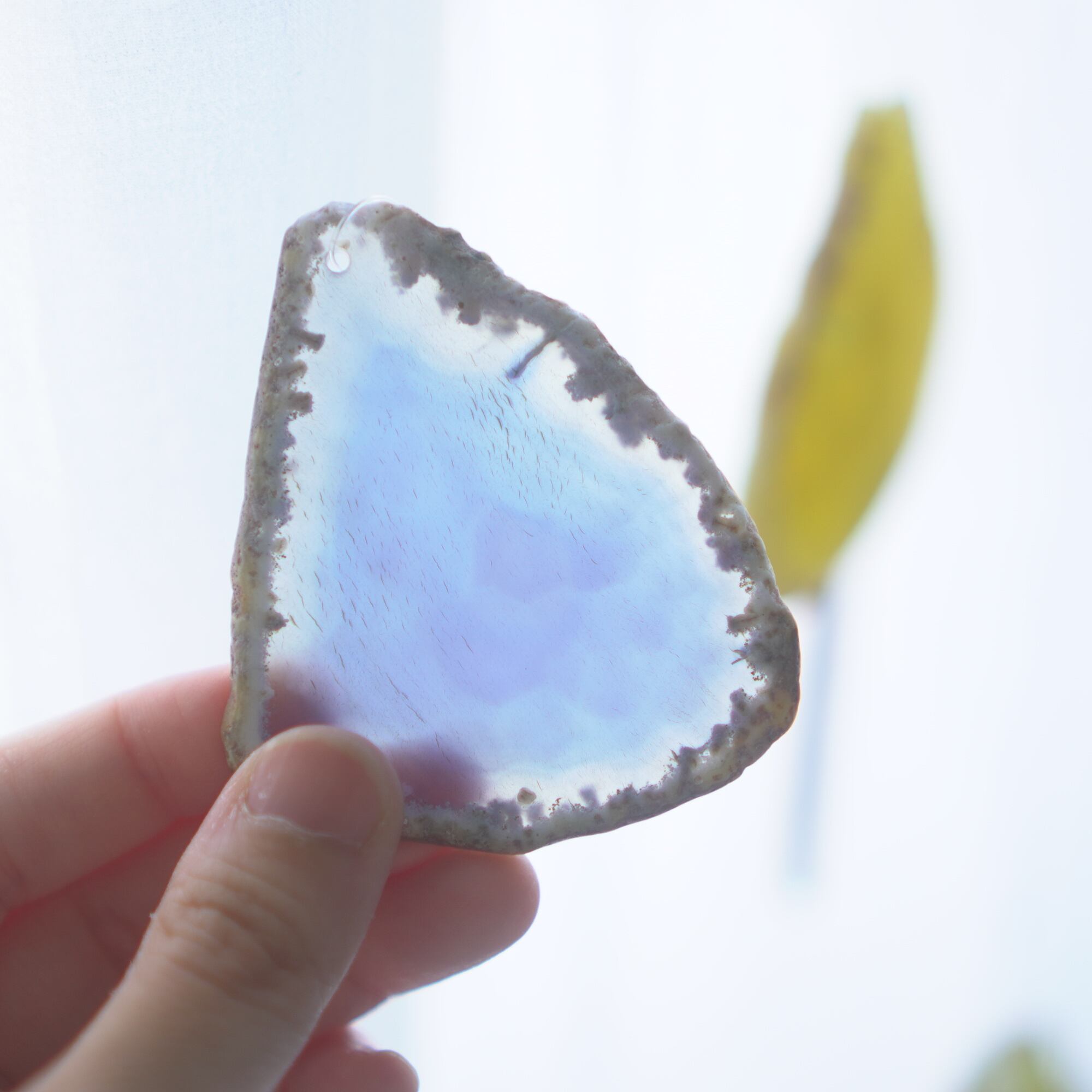 (瑪瑙の濃い色は染色によるもので、水に濡れたり布で擦ると多少色落ちします。飾るものなので大丈夫かと思いますが白いお洋服などには触れないようにされてください。また、画像のような細かなヒビ・カケはスライスメノウの加工上かなり多くあるので、チャイムとしての機能や全体の外観を著しく損なうものを除き、見た目の完璧さ<音色の響き重視で選んで使用しております、よろしくお願い致します)