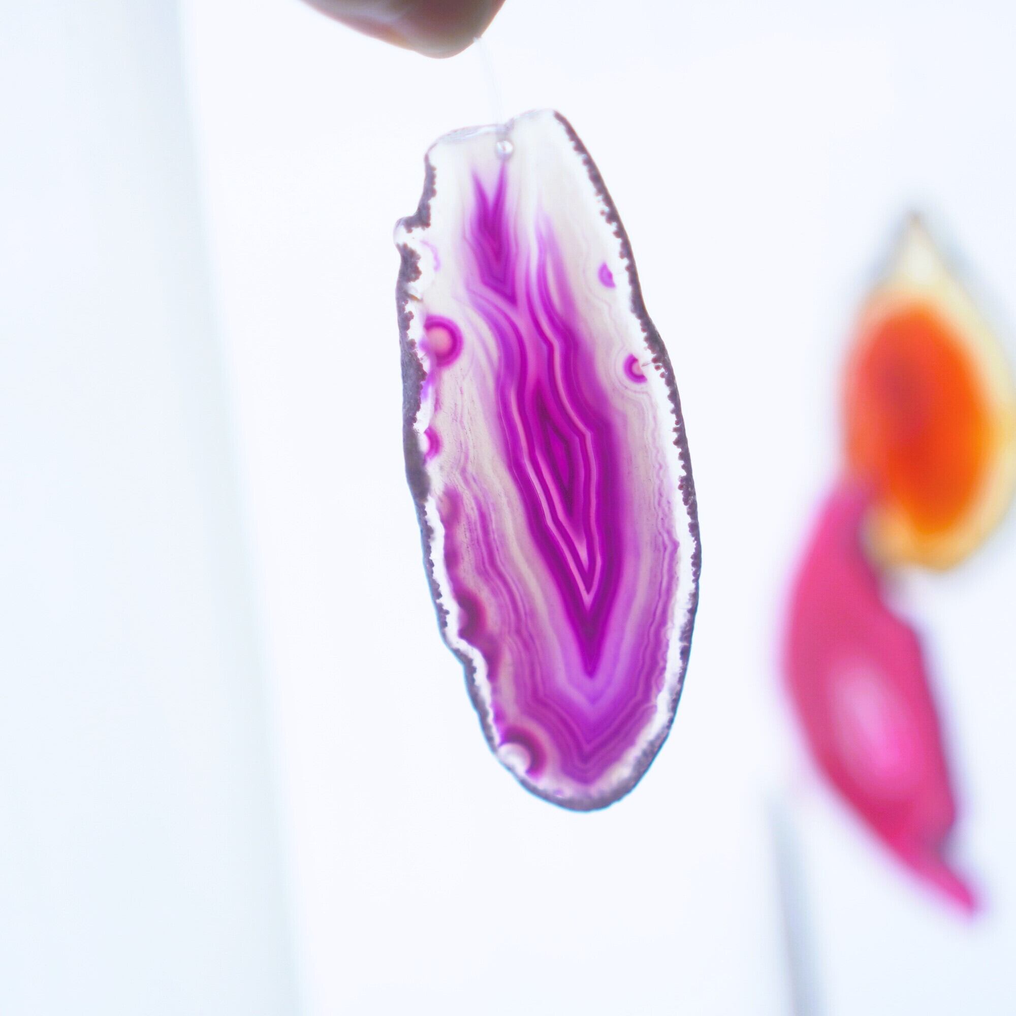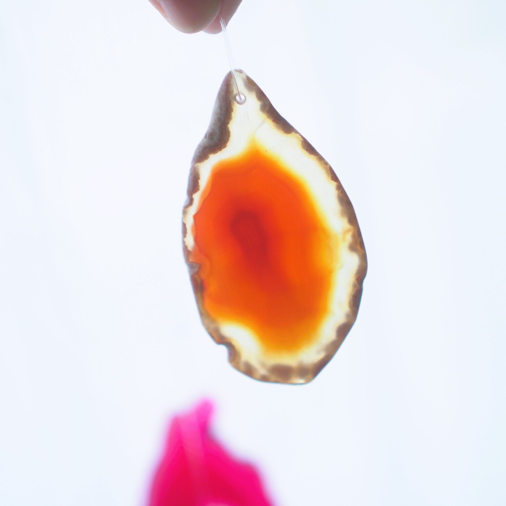 ✧✧✧瑪瑙の濃い色は染色によるもので、水に濡れたり布で擦ると多少色落ちします。飾るものなので大丈夫かと思いますが白いお洋服などには触れないようにされてください。また、画像のような細かなヒビ・カケはスライスメノウの加工上かなり多くあるので、チャイムとしての機能や全体の外観を著しく損なうものを除き、見た目の完璧さ<音色の響き重視で選んで使用しております、よろしくお願い致します✧✧✧