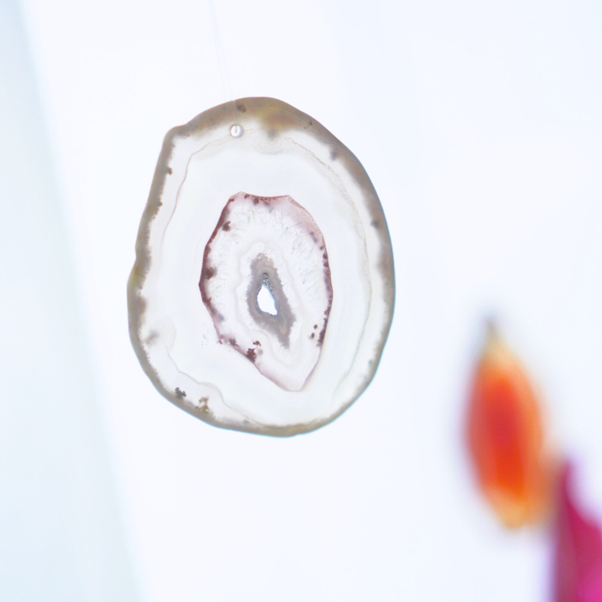 Agate Slice , Natural Wood , Nylon Cord , Metal