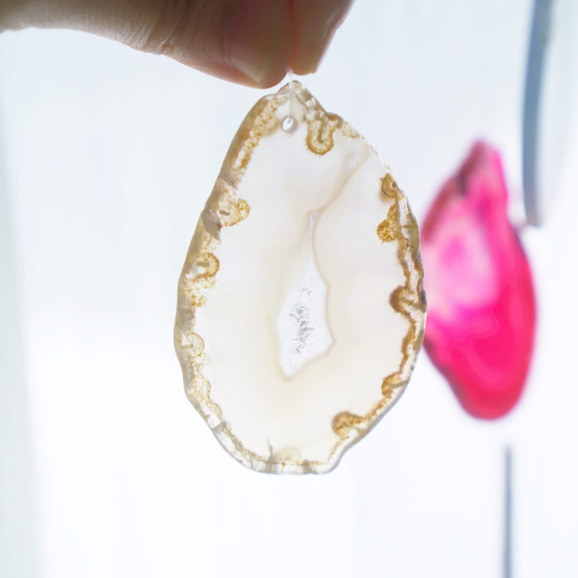 Agate Slice , Natural Wood , Nylon Cord , Metal