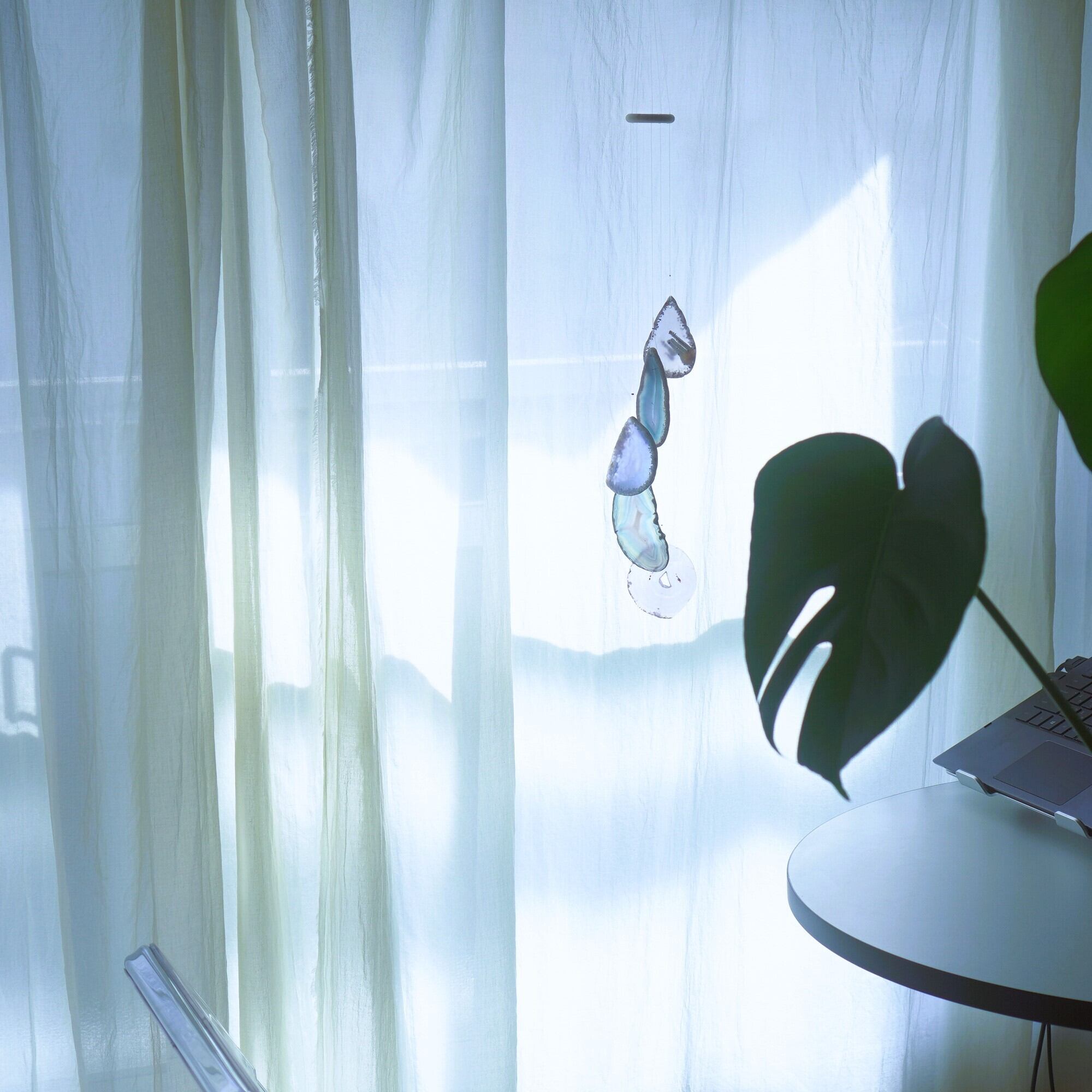 そしてカーテン越しではなく直射日光を当てた際のサンキャッチャーとしてのチャイムも、美しい光をお部屋の中に運んでくれます。(このページの下部に動画あり)