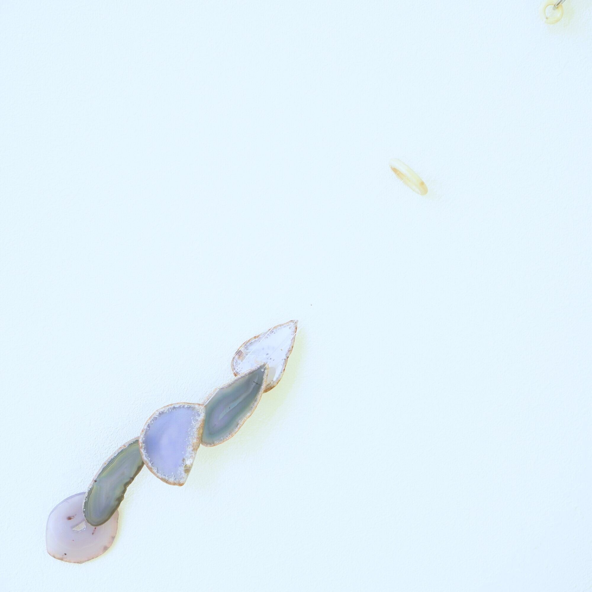 (瑪瑙の濃い色は染色によるもので、水に濡れたり布で擦ると多少色落ちします。飾るものなので大丈夫かと思いますが白いお洋服などには触れないようにされてください。また、画像のような細かなヒビ・カケはスライスメノウの加工上かなり多くあるので、チャイムとしての機能や全体の外観を著しく損なうものを除き、見た目の完璧さ<音色の響き重視で選んで使用しております、よろしくお願い致します)
