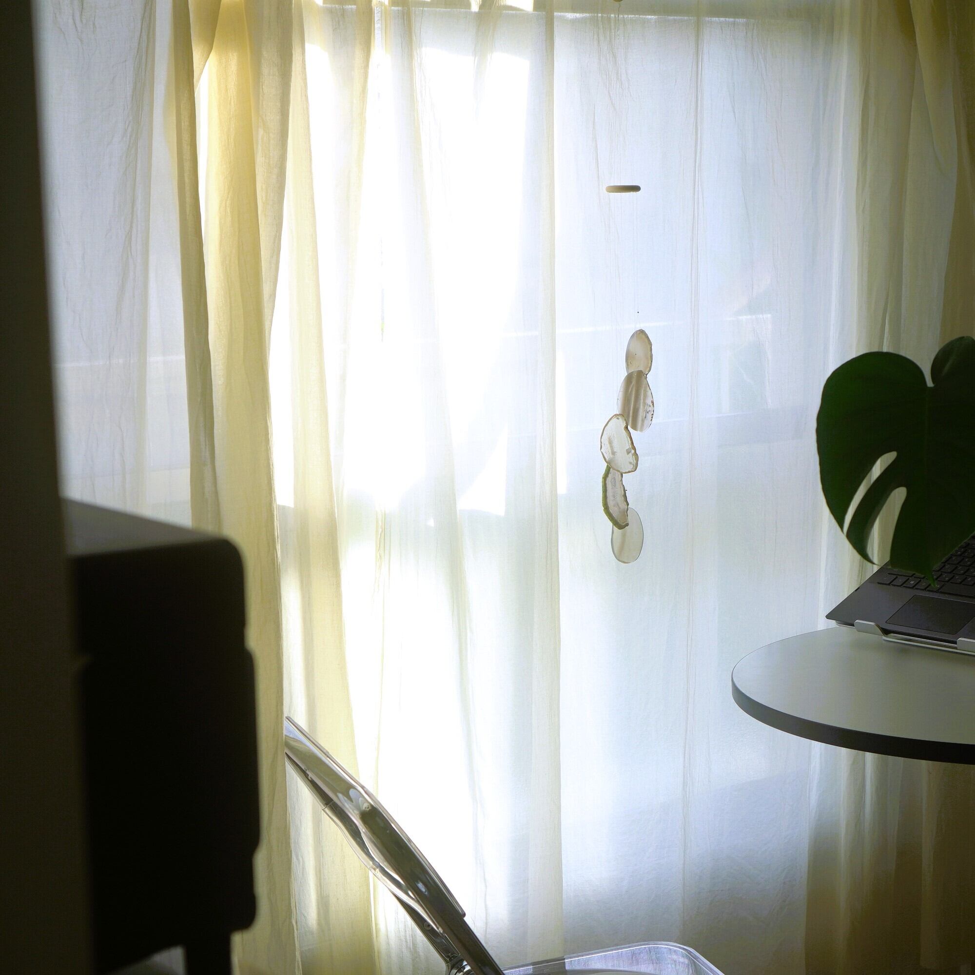 そしてカーテン越しではなく直射日光を当てた際のサンキャッチャーとしてのチャイムも、美しい光をお部屋の中に運んでくれます。(このページの下部に動画あり)