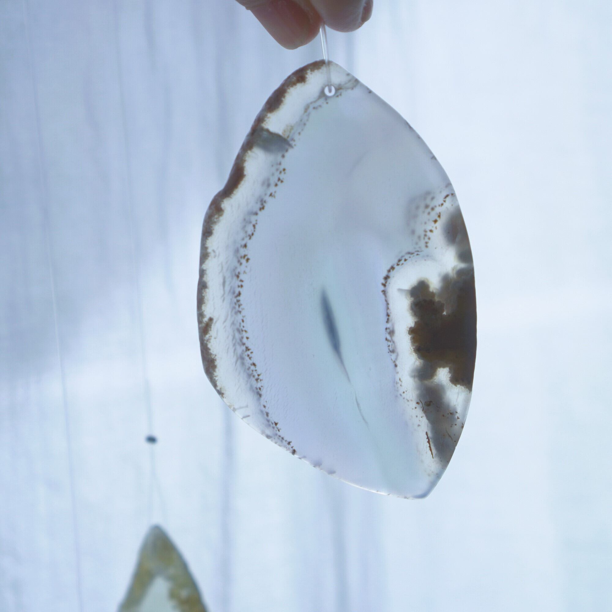 連なるアゲートが風を受けて揺れるとチリンチリン、美しい響きの音が鳴りとても癒されます。