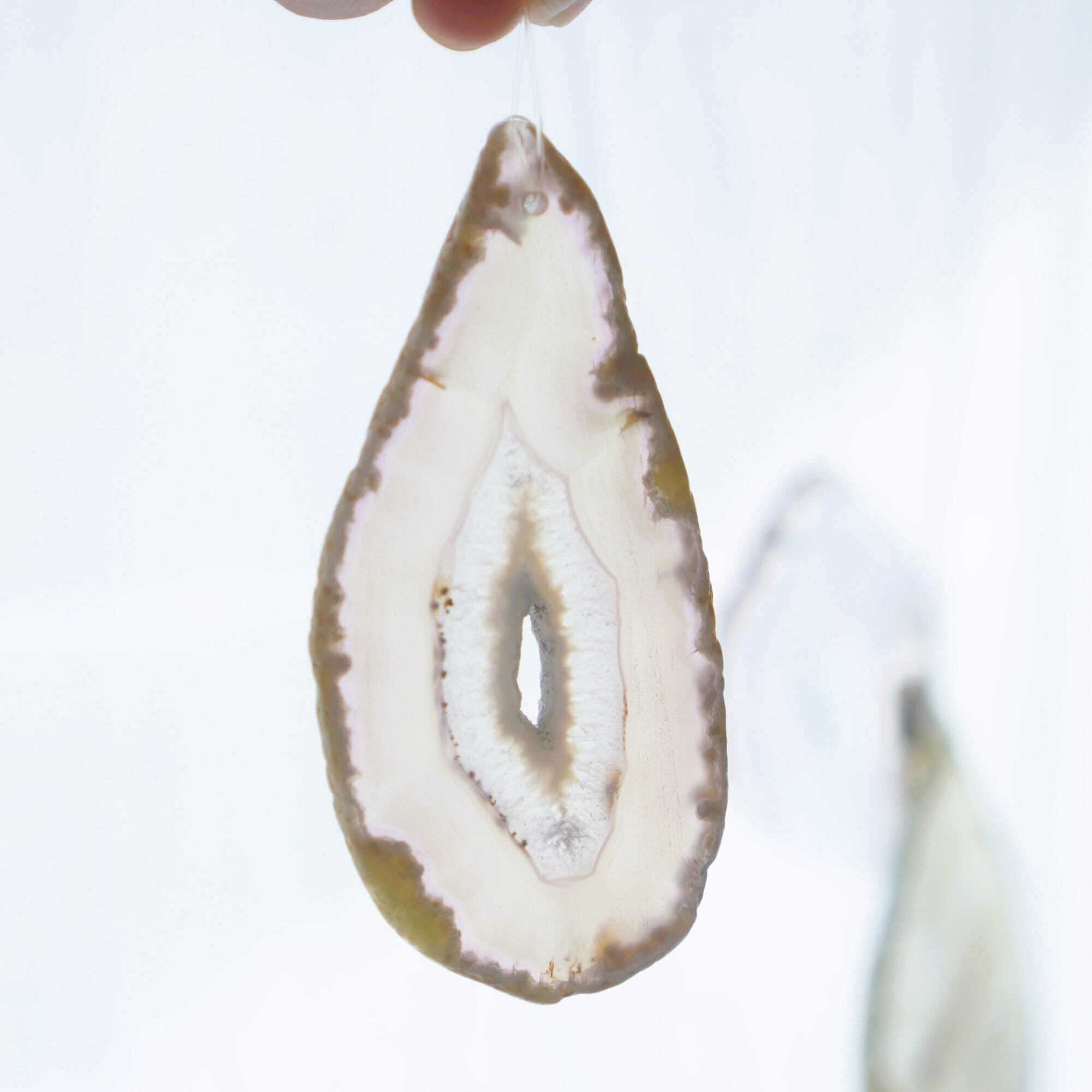 Agate Slice , Natural Wood , Nylon Cord , Metal
