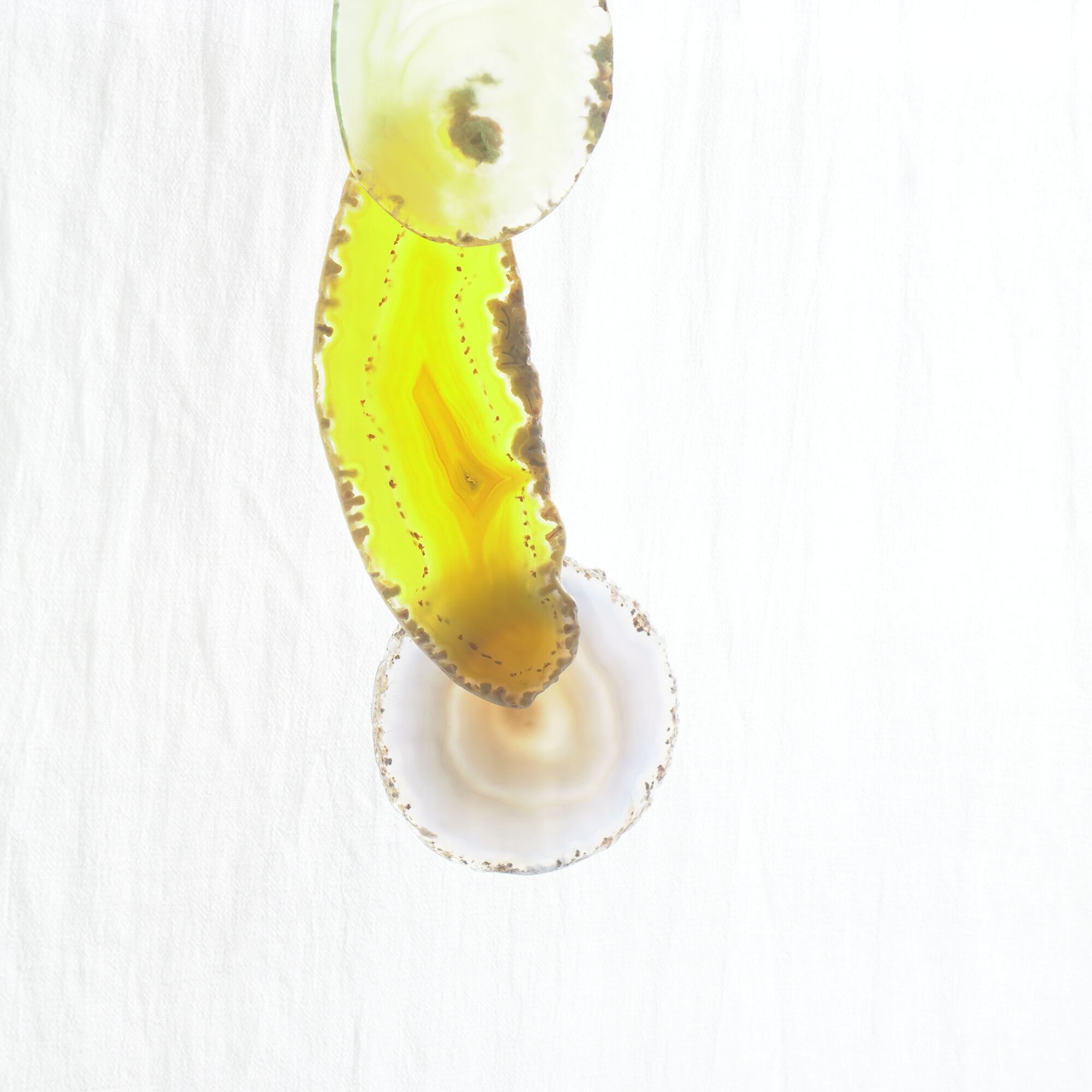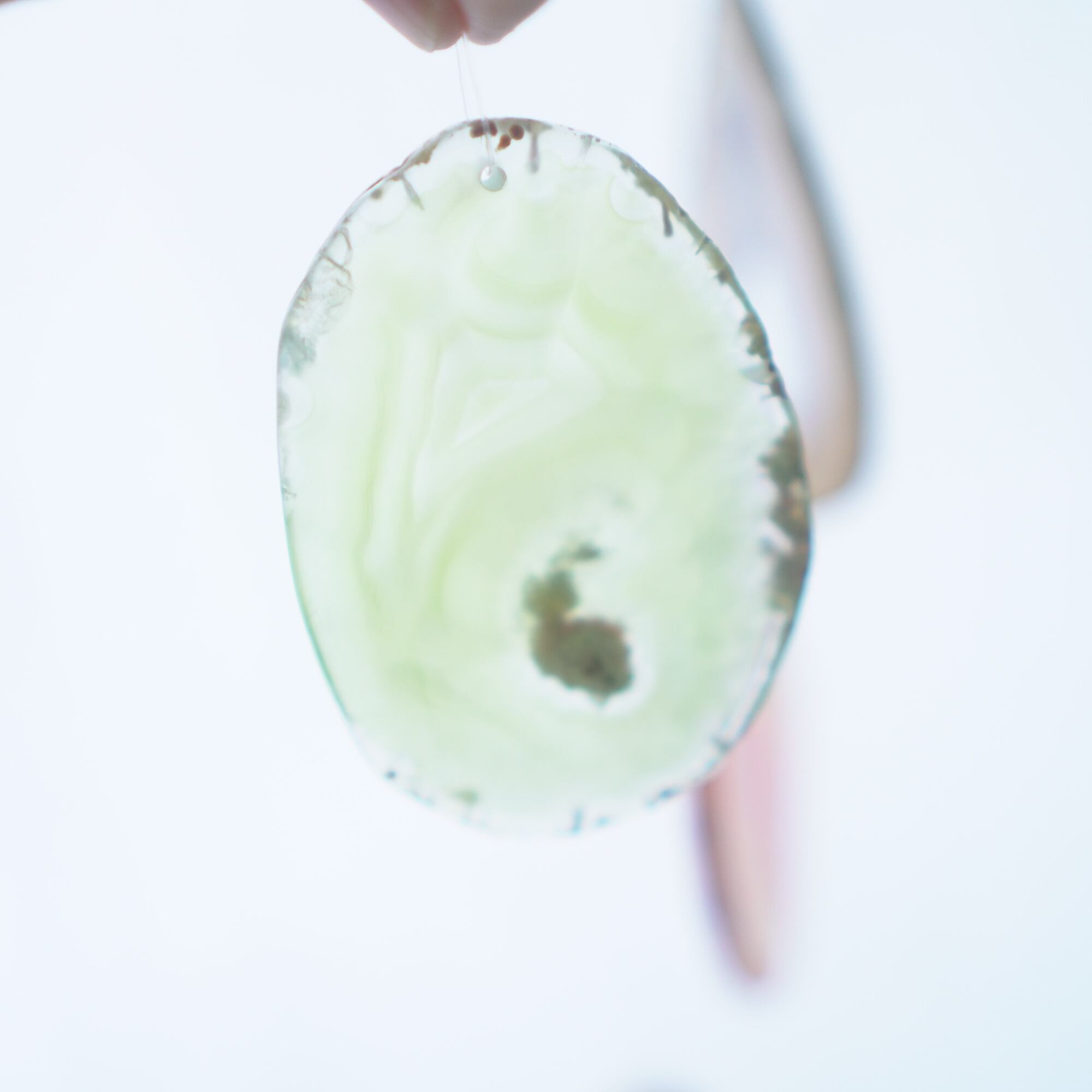 また、透明感が魅力でもあるので、窓際で自然光を通した際と、室内灯の下で光を通さずに見る際、異なる表情を見せてくれますのでその違いも是非お楽しみください。(写真の前半は自然光を透かせたもので、後半の2枚は光を透かさず壁を背景に撮影したものです)