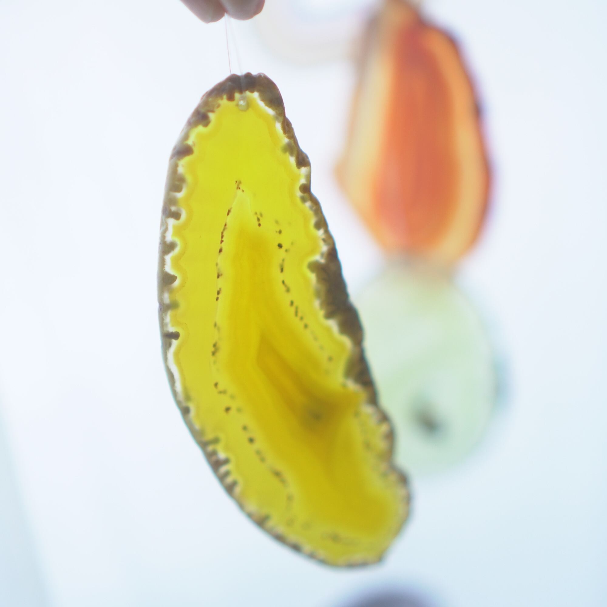 連なるアゲートが風を受けて揺れるとチリンチリン、美しい響きの音が鳴りとても癒されます。