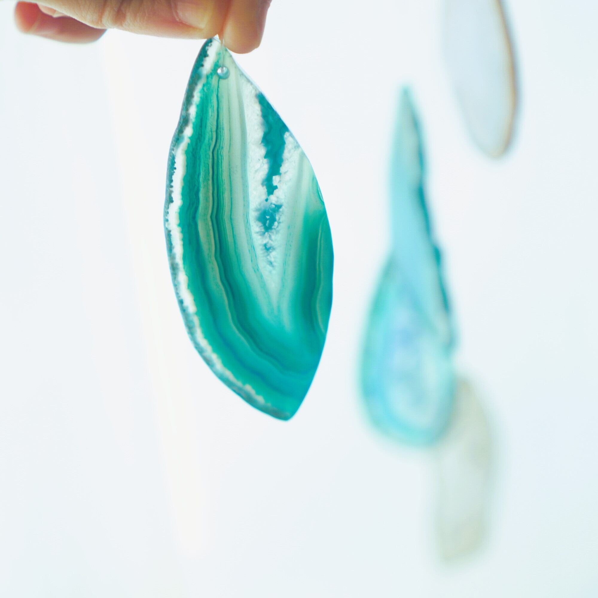 連なるアゲートが風を受けて揺れるとチリンチリン、美しい響きの音が鳴りとても癒されます。