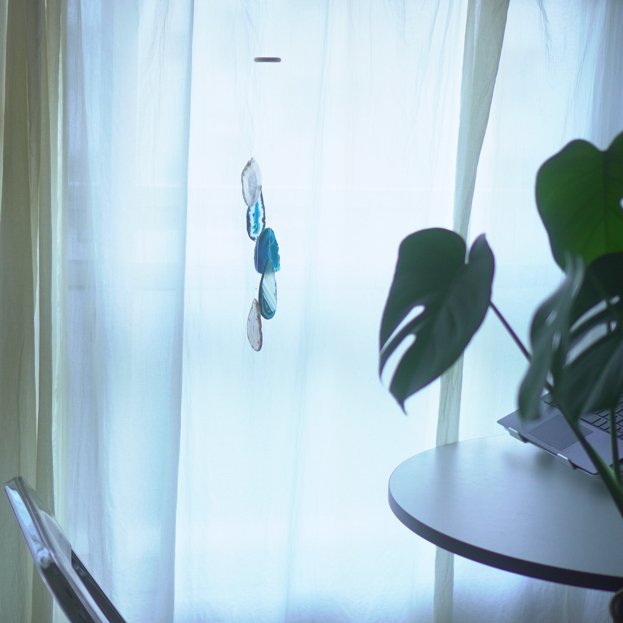 連なるアゲートが風を受けて揺れるとチリンチリン、美しい響きの音が鳴りとても癒されます。