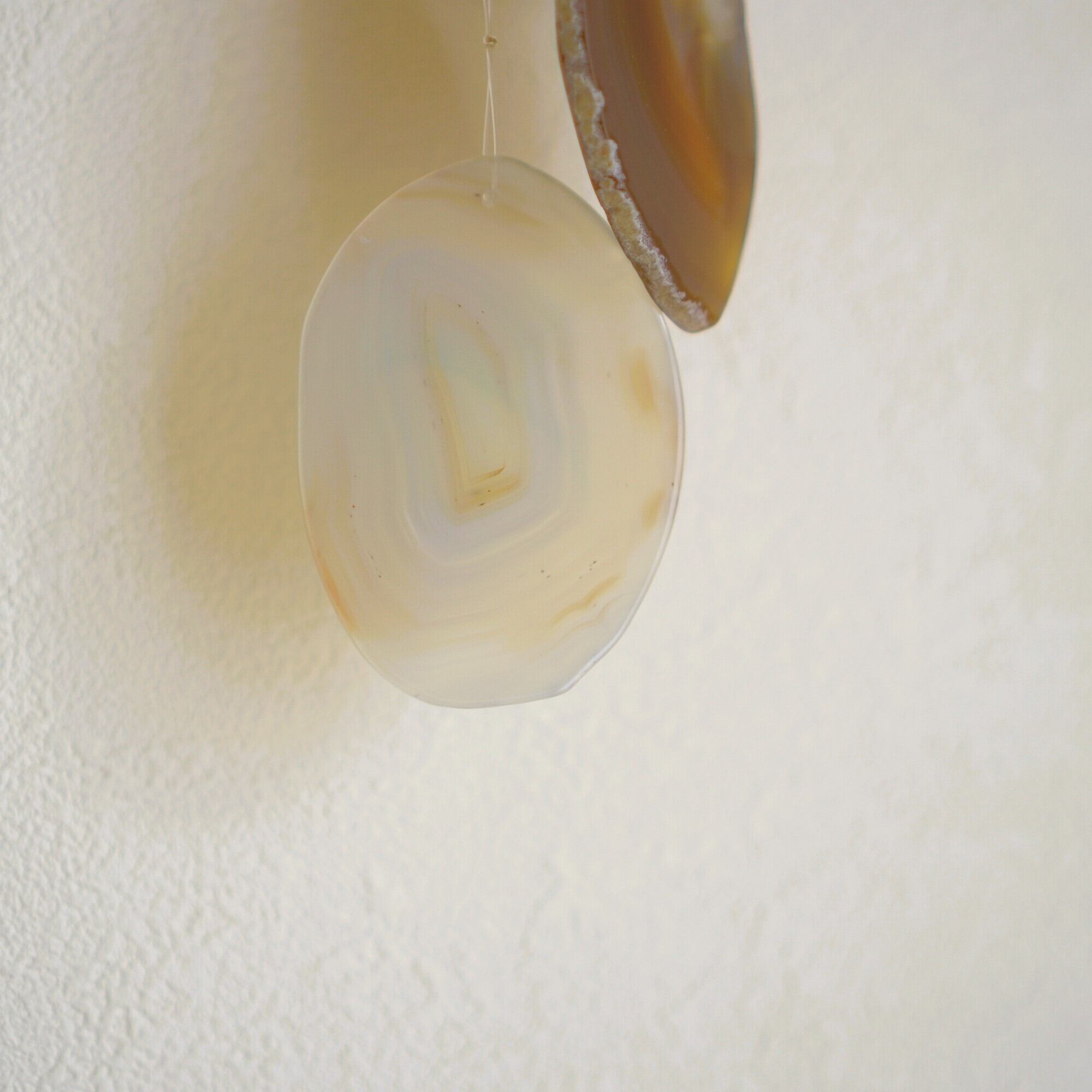 ウィンドチャイムですが、一枚一枚出方の異なるアゲートの個性的な柄は吊るすだけでおしゃれなインテリアにもなりますので、季節問わずおすすめのアイテムです。