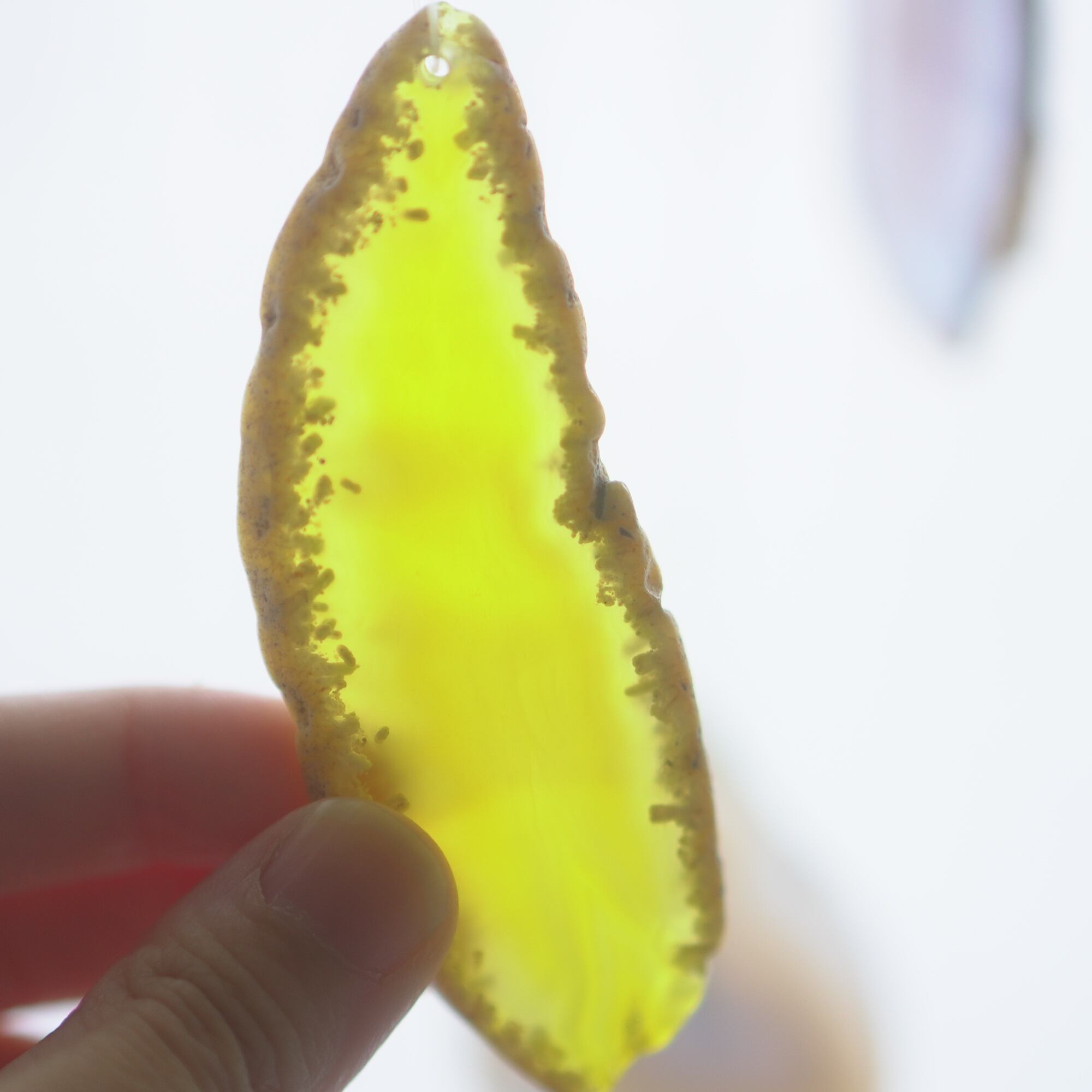 また、透明感が魅力でもあるので、窓際で自然光を通した際と、室内灯の下で光を通さずに見る際、異なる表情を見せてくれますのでその違いも是非お楽しみください。(写真の前半は自然光を透かせたもので、後半の4枚は光を透かさず壁を背景に撮影したものです)