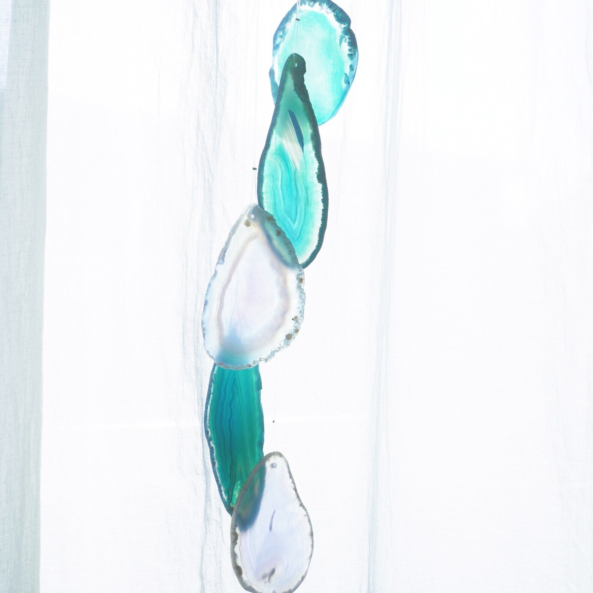 連なるアゲートが風を受けて揺れるとチリンチリン、美しい響きの音が鳴りとても癒されます。