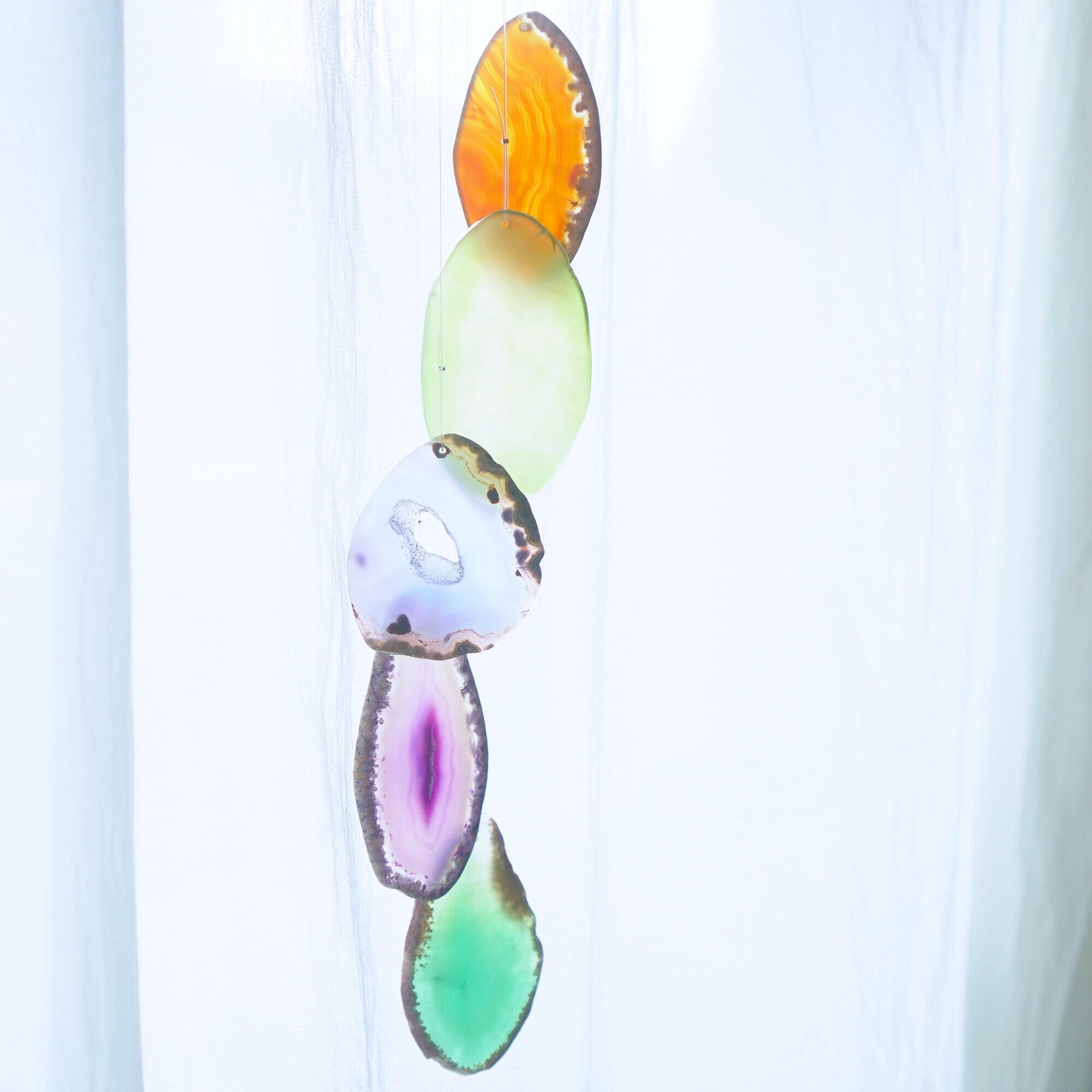 連なるアゲートが風を受けて揺れるとチリンチリン、美しい響きの音が鳴りとても癒されます。