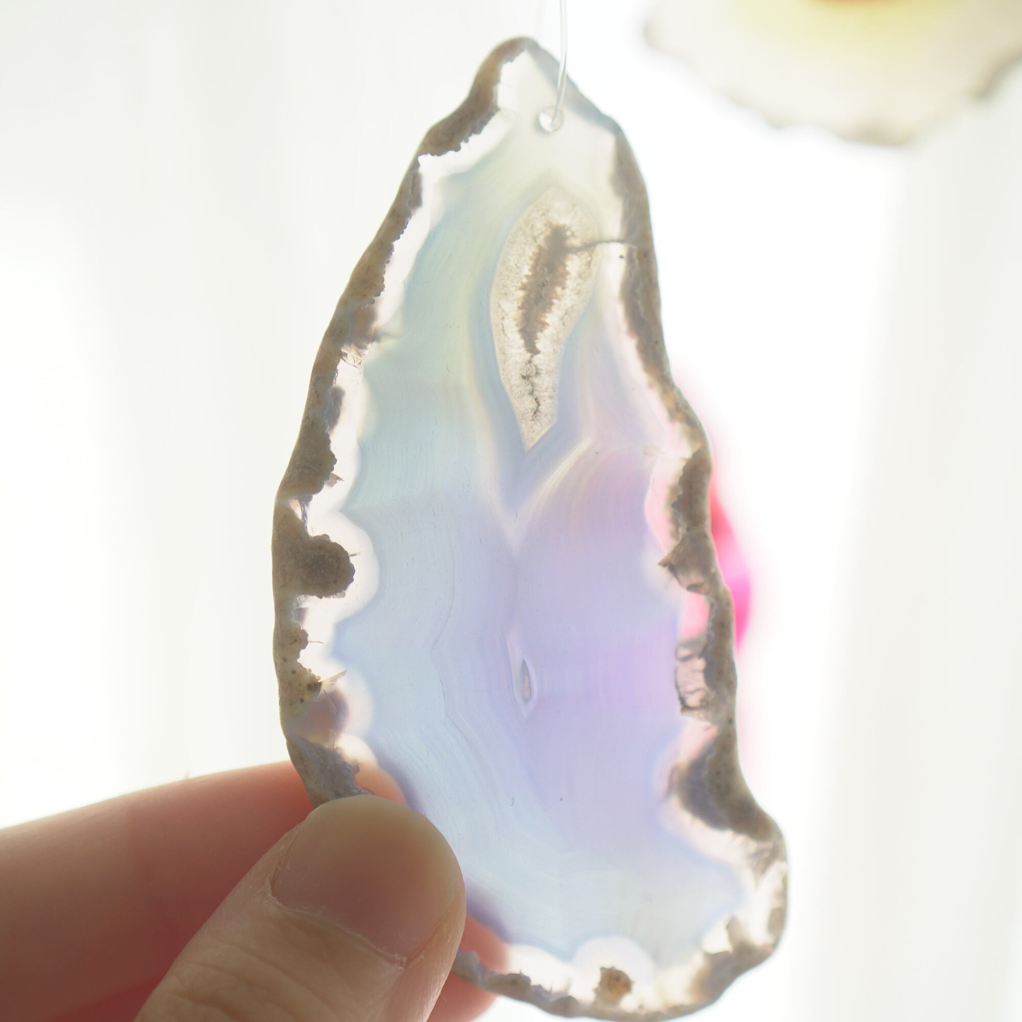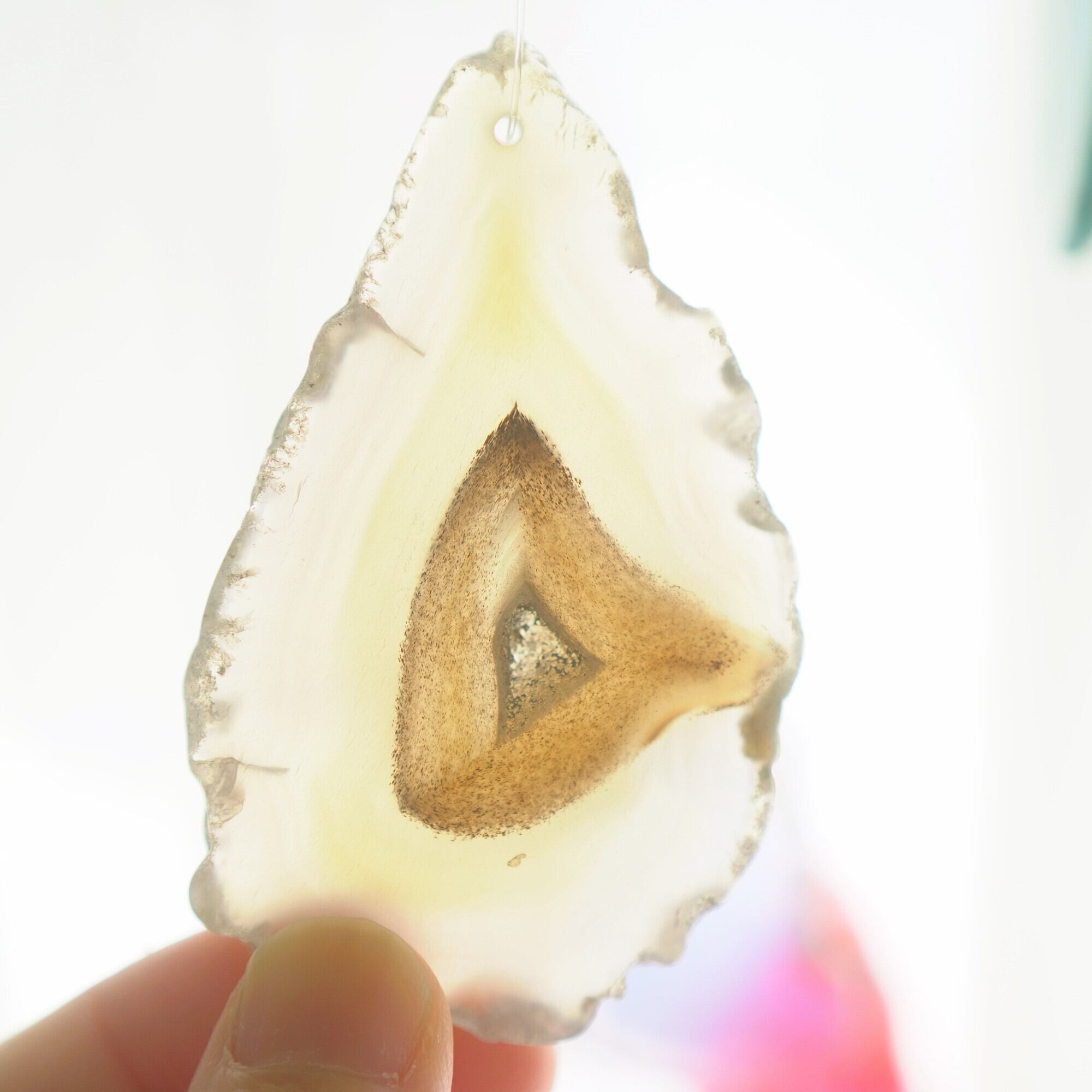 Agate Slice , Natural Wood , Nylon Cord , Metal