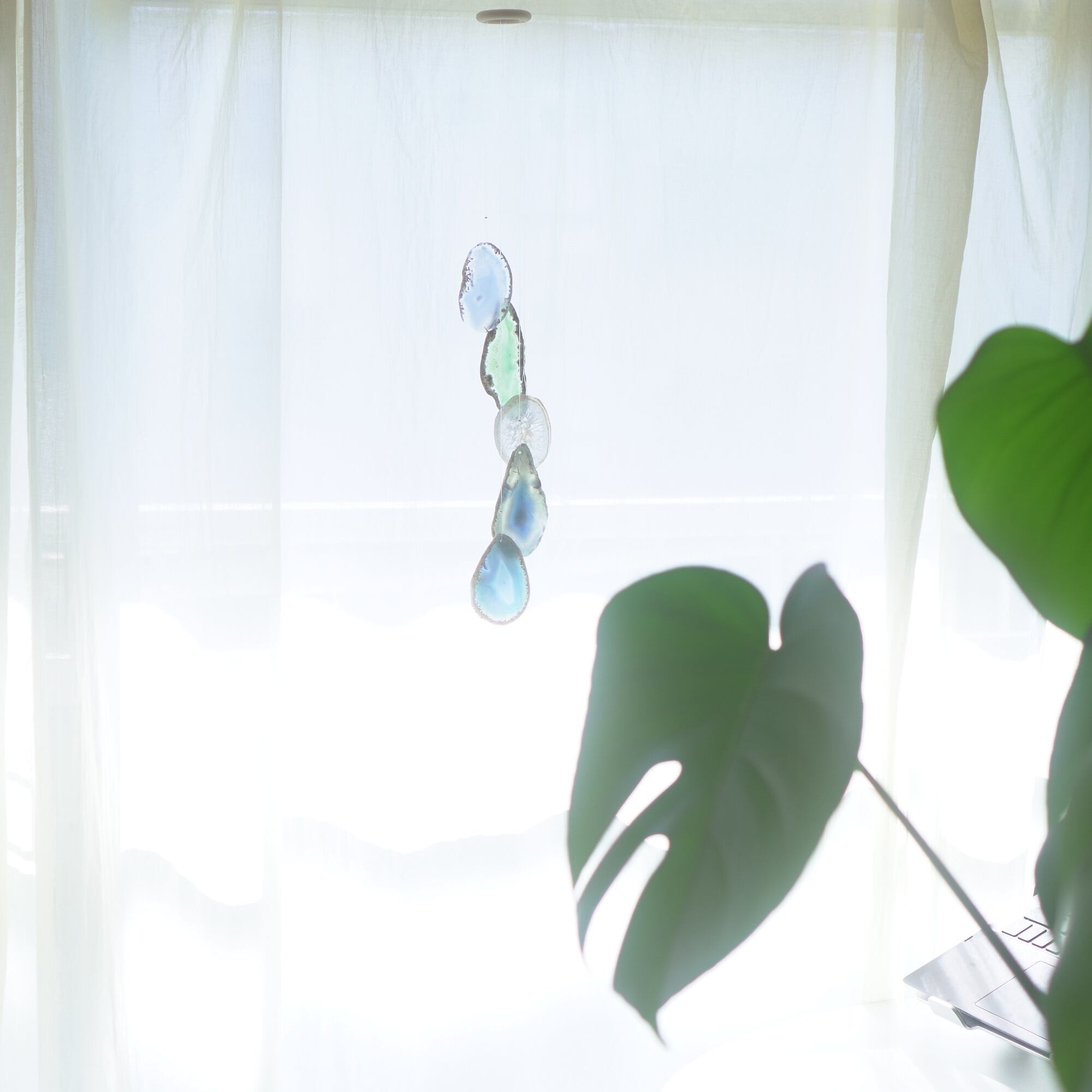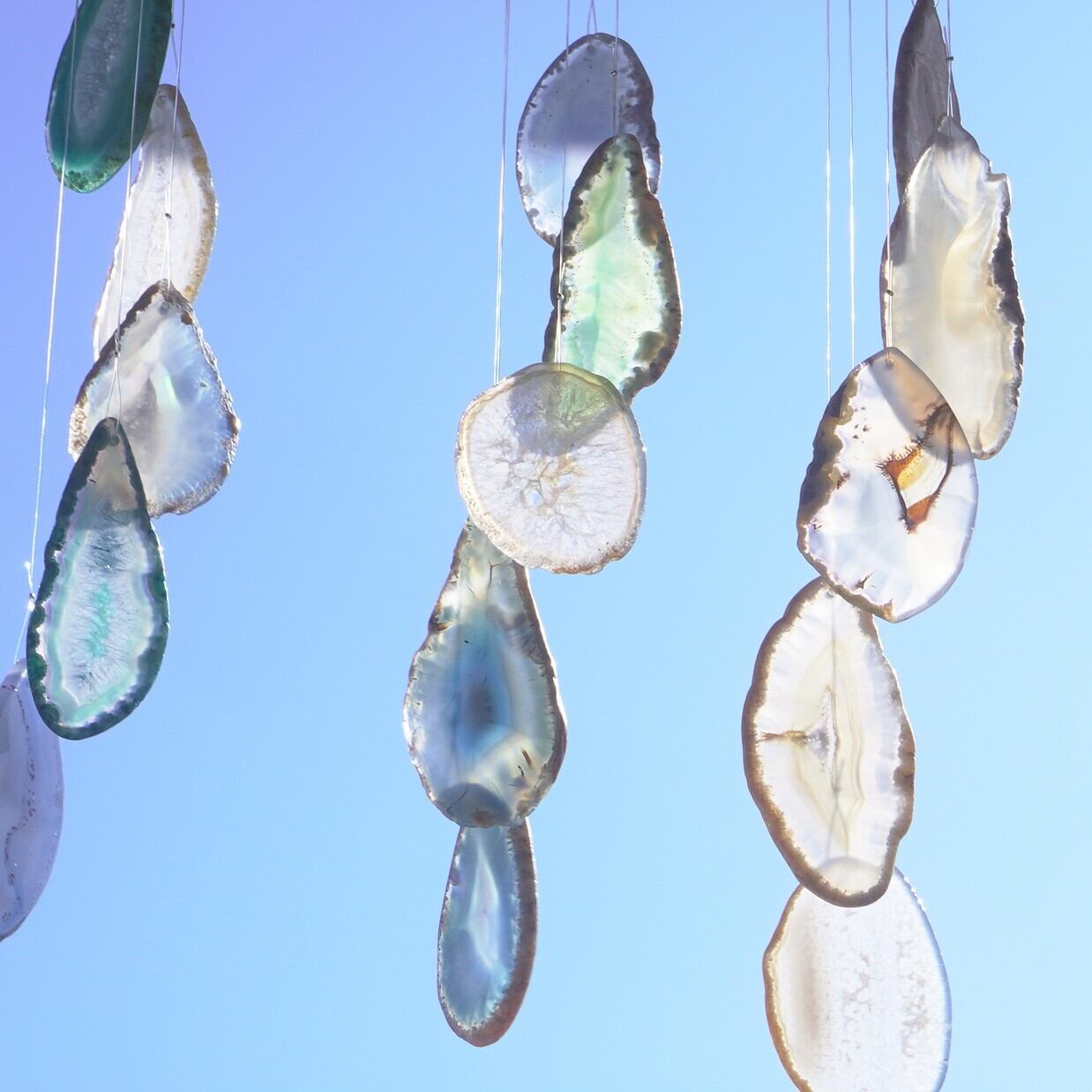 連なるアゲートが風を受けて揺れるとチリンチリン、美しい響きの音が鳴りとても癒されます。