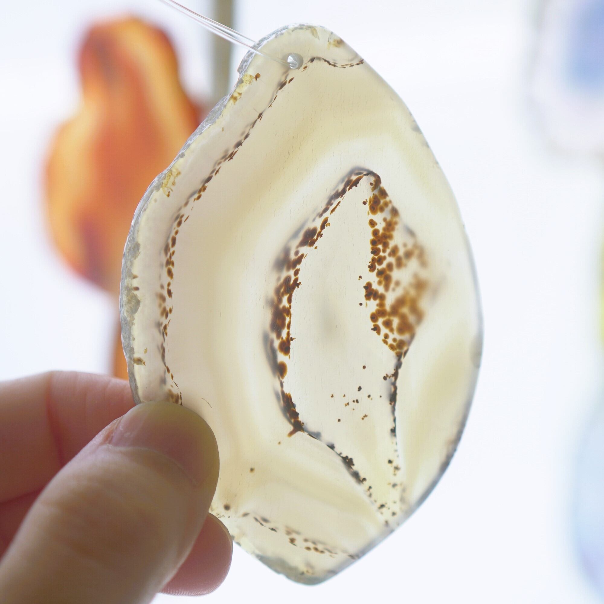 連なるアゲートが風を受けて揺れるとチリンチリン、美しい響きの音が鳴りとても癒されます。
