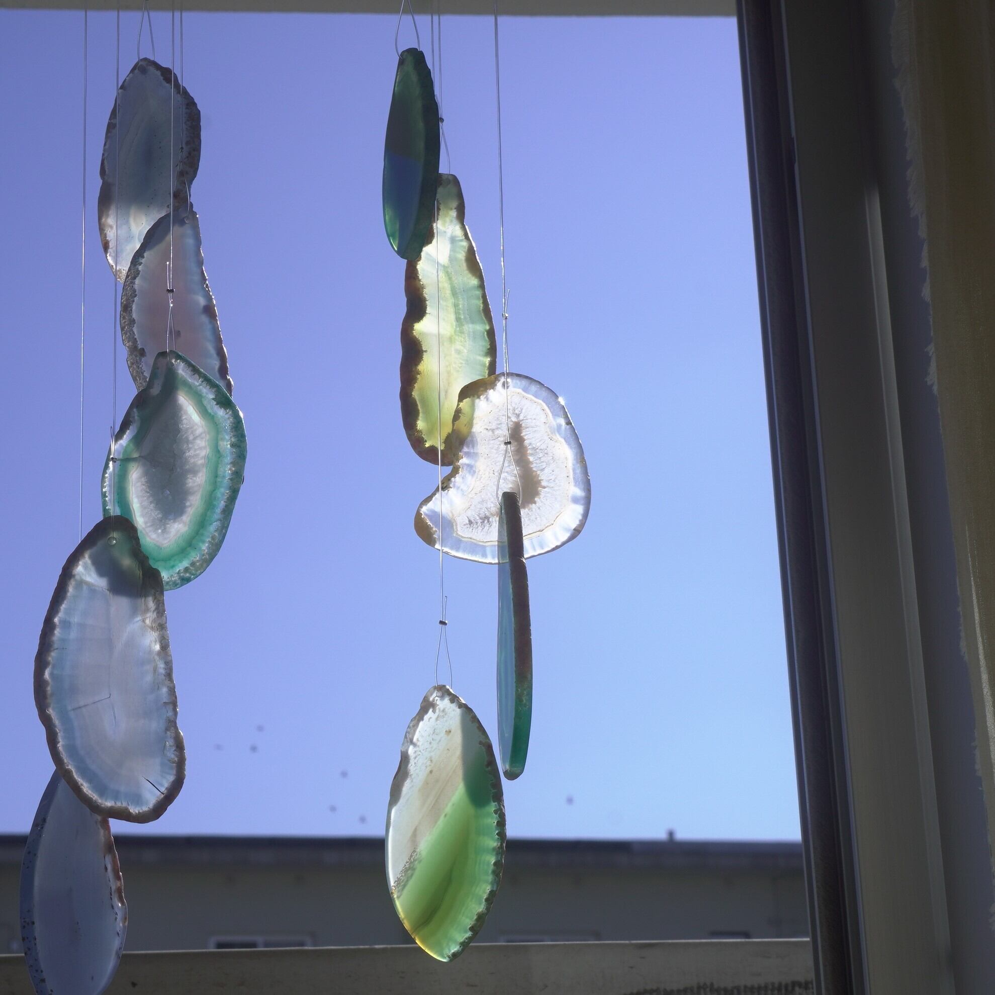 連なるアゲートが風を受けて揺れるとチリンチリン、美しい響きの音が鳴りとても癒されます。