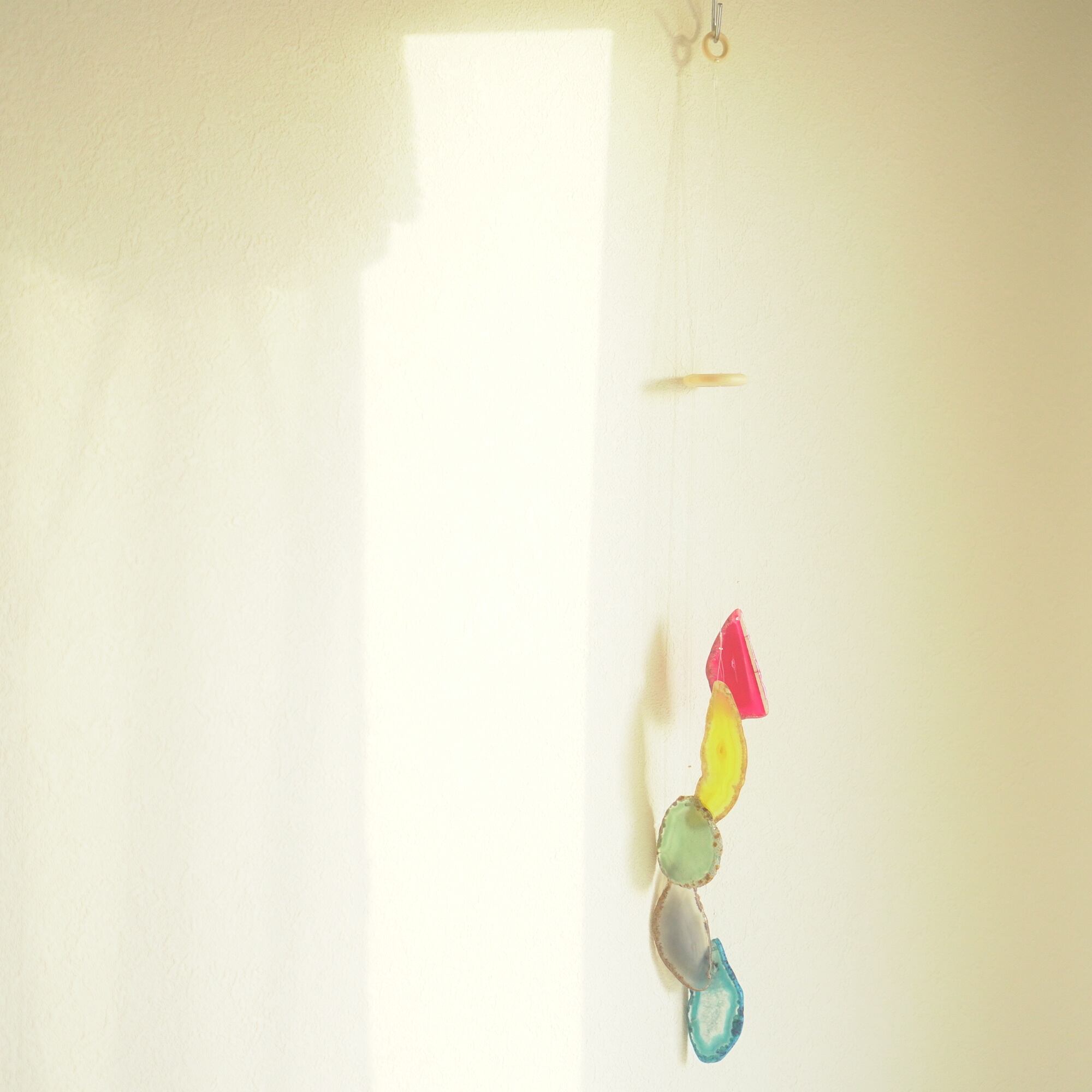 そしてカーテン越しではなく直射日光を当てた際のサンキャッチャーとしてのチャイムも、美しい光をお部屋の中に運んでくれます。(このページの下部に動画あり)