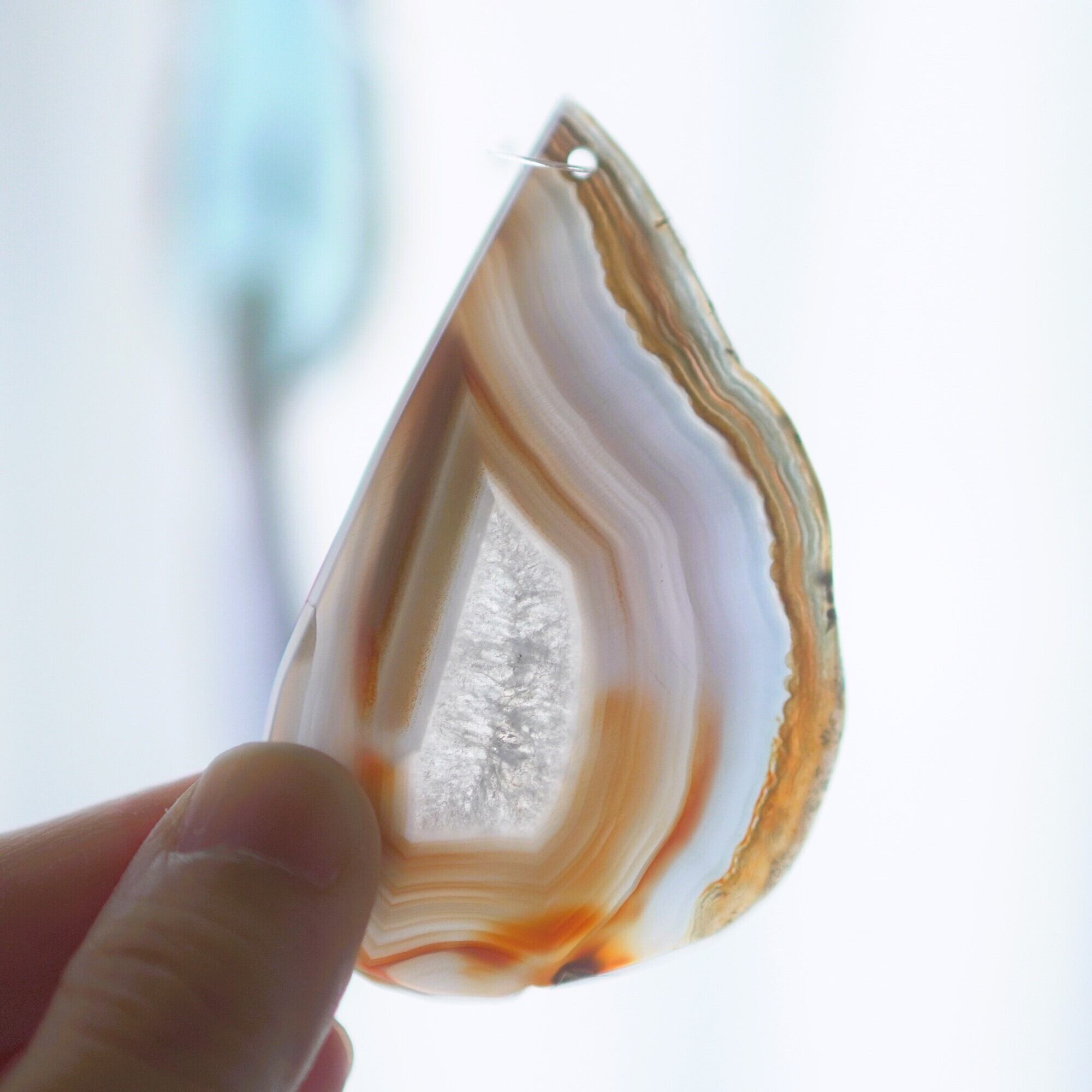 Agate Slice , Natural Wood , Nylon Cord , Metal