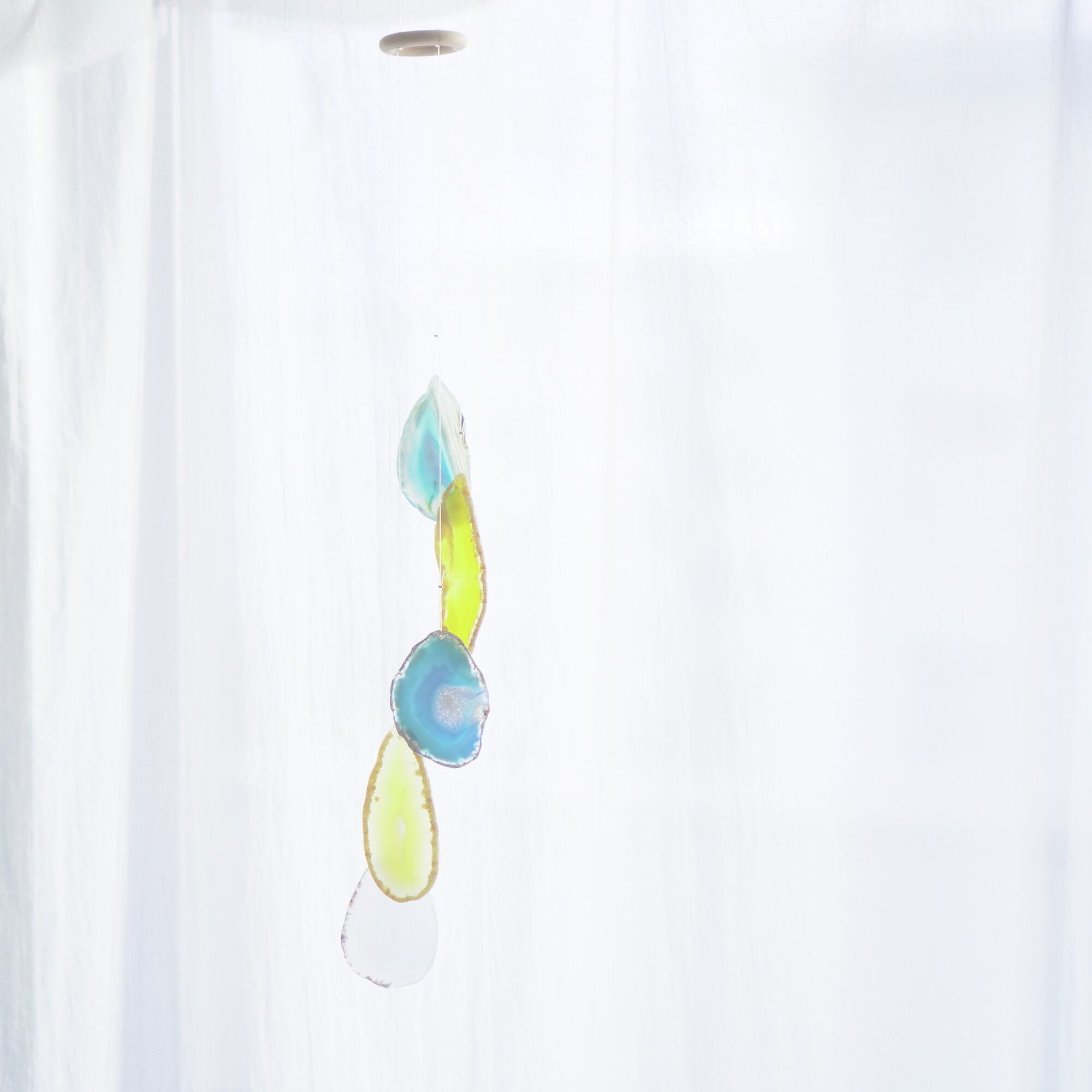 連なるアゲートが風を受けて揺れるとチリンチリン、美しい響きの音が鳴りとても癒されます。