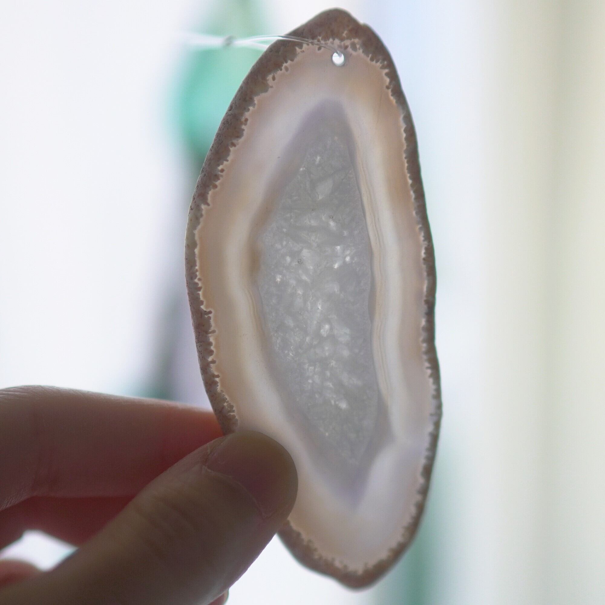 Agate Slice , Natural Wood , Nylon Cord , Metal