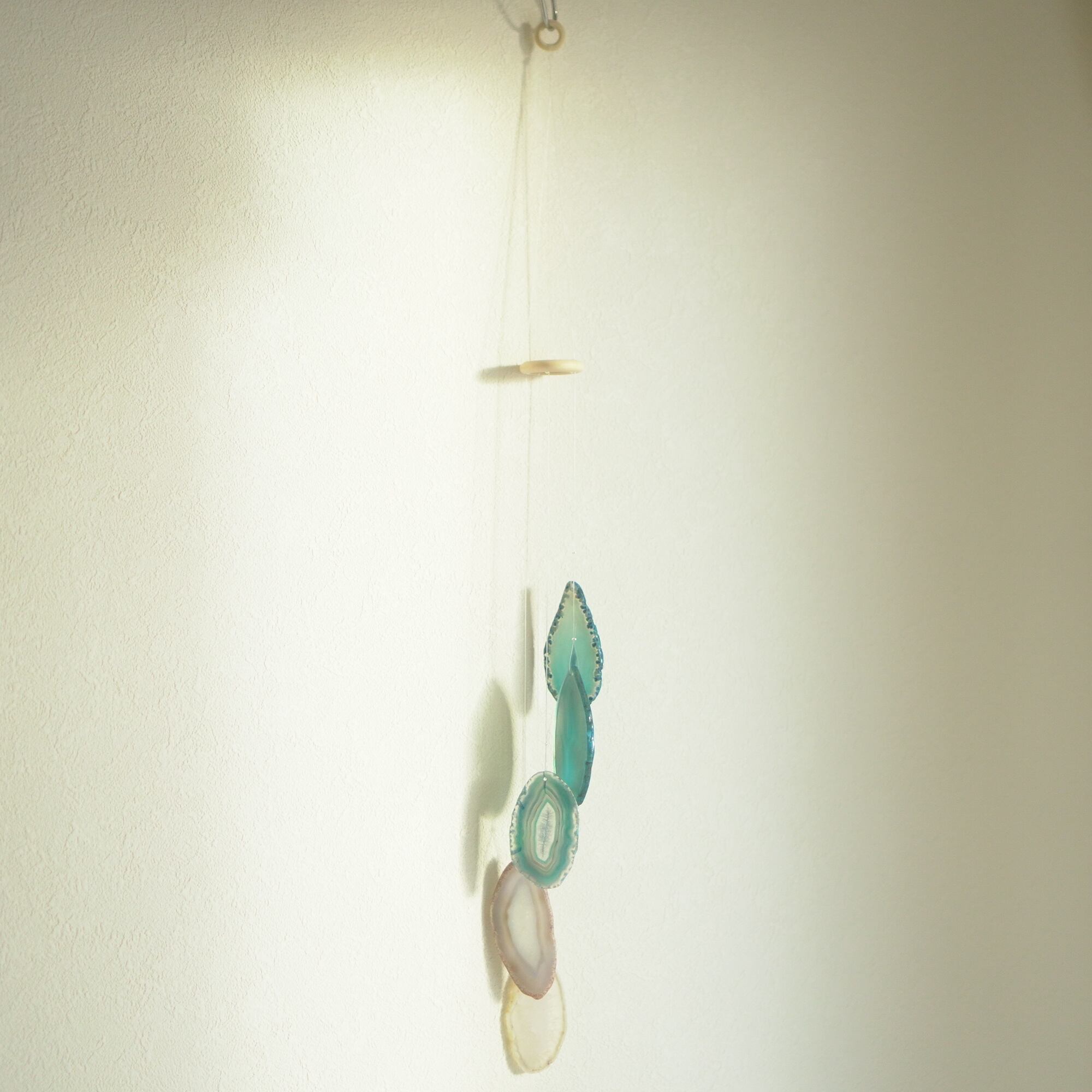 連なるアゲートが風を受けて揺れるとチリンチリン、美しい響きの音が鳴りとても癒されます。