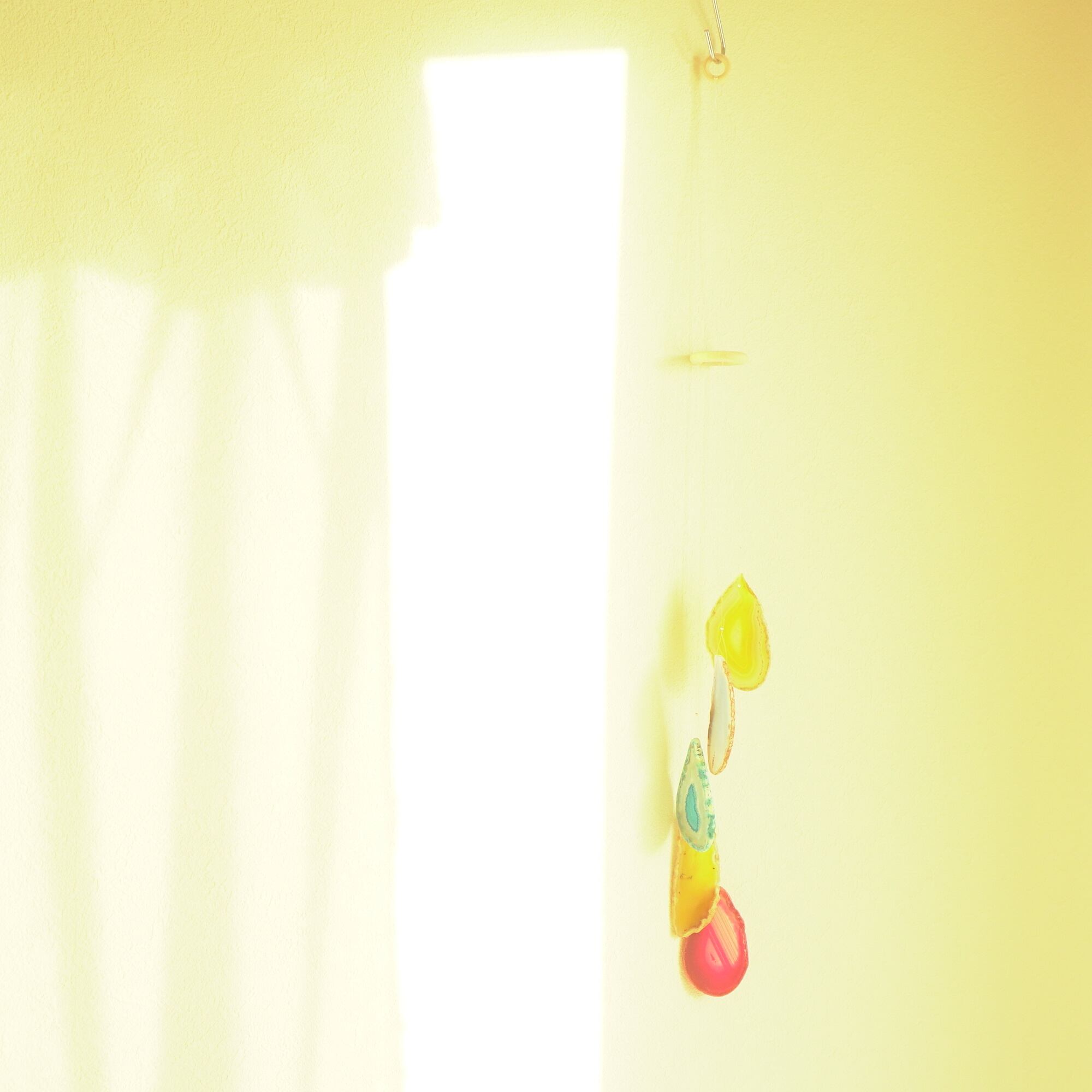 そしてカーテン越しではなく直射日光を当てた際のサンキャッチャーとしてのチャイムも、美しい光をお部屋の中に運んでくれます。(このページの下部に動画あり)