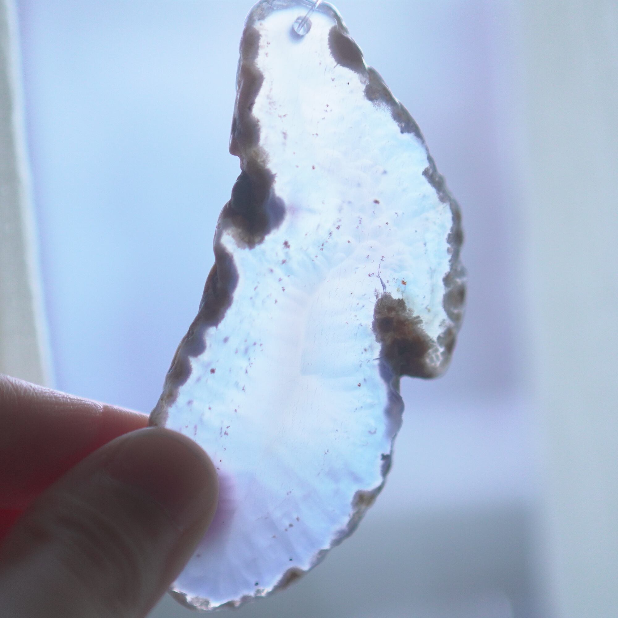 また、透明感が魅力でもあるので、窓際で自然光を通した際と、室内灯の下で光を通さずに見る際、異なる表情を見せてくれますのでその違いも是非お楽しみください。(写真の前半は自然光を透かせたもので、後半の2枚は光を透かさず壁を背景に撮影したものです)