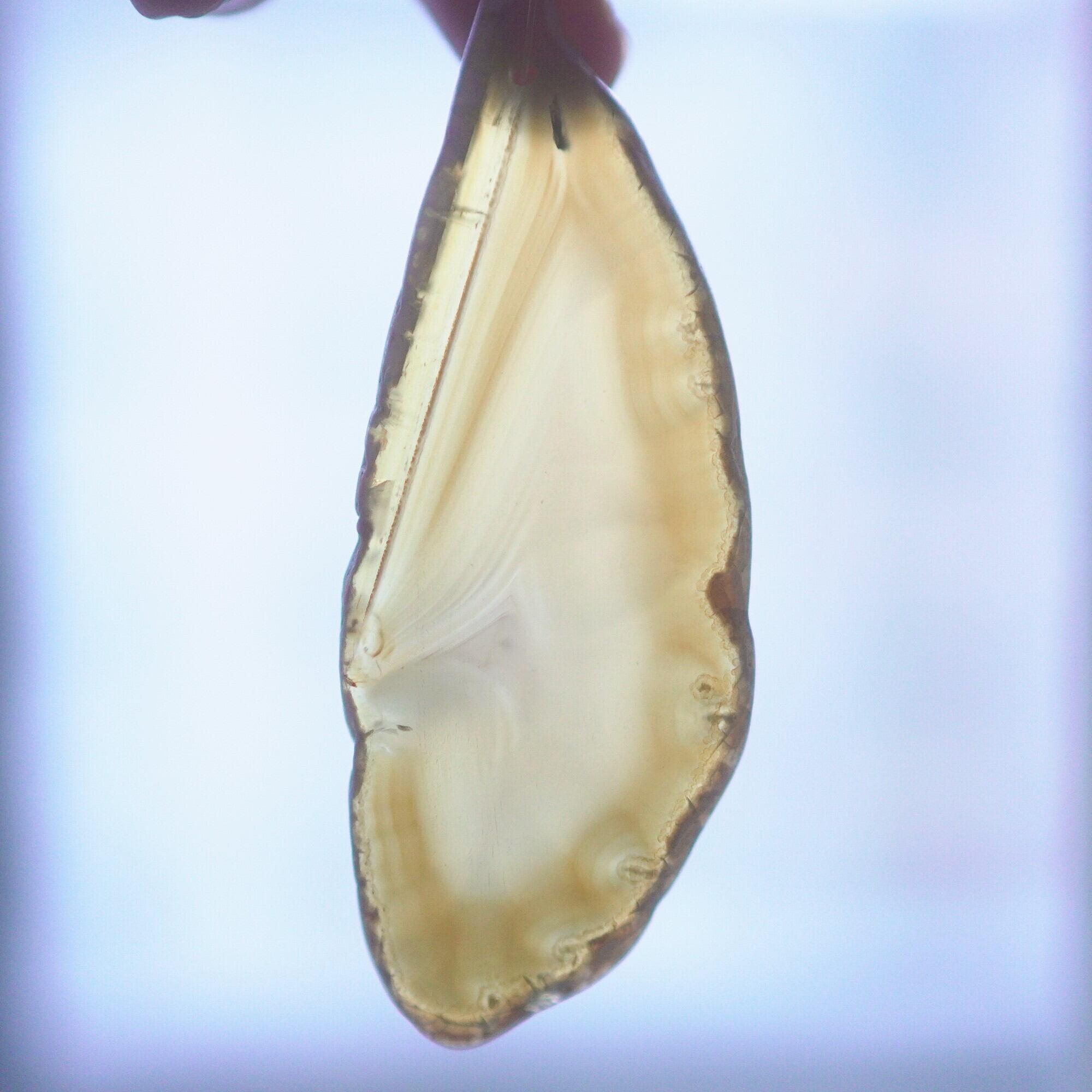 また、透明感が魅力でもあるので、窓際で自然光を通した際と、室内灯の下で光を通さずに見る際、異なる表情を見せてくれますのでその違いも是非お楽しみください。(写真の前半は自然光を透かせたもので、後半の2枚は光を透かさず壁を背景に撮影したものです)