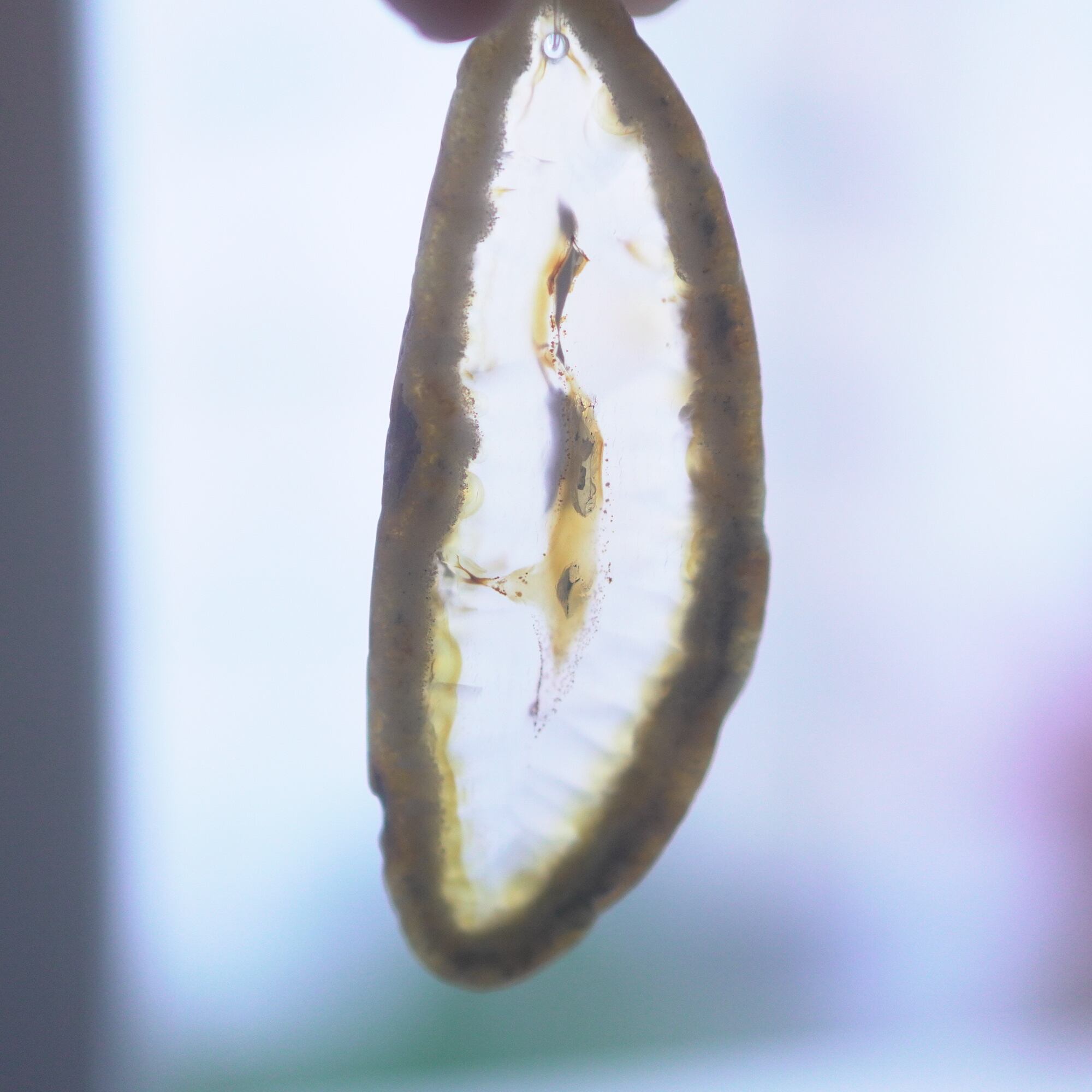 また、透明感が魅力でもあるので、窓際で自然光を通した際と、室内灯の下で光を通さずに見る際、異なる表情を見せてくれますのでその違いも是非お楽しみください。(写真の前半は自然光を透かせたもので、後半の2枚は光を透かさず壁を背景に撮影したものです)