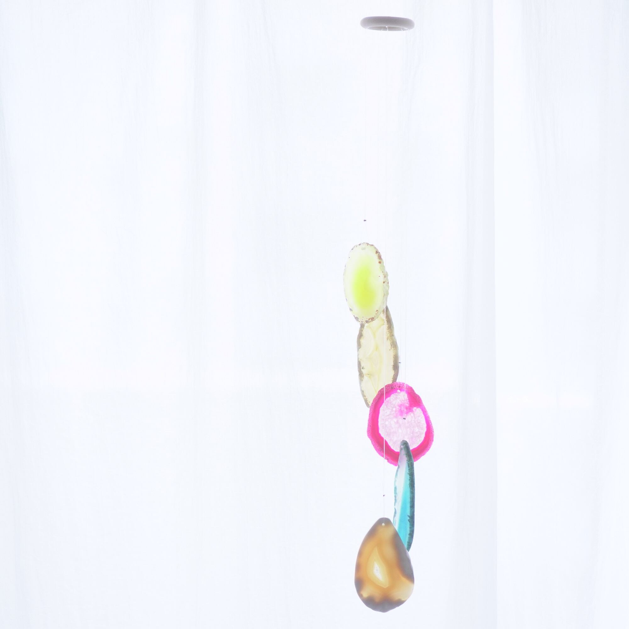 連なるアゲートが風を受けて揺れるとチリンチリン、美しい響きの音が鳴りとても癒されます。