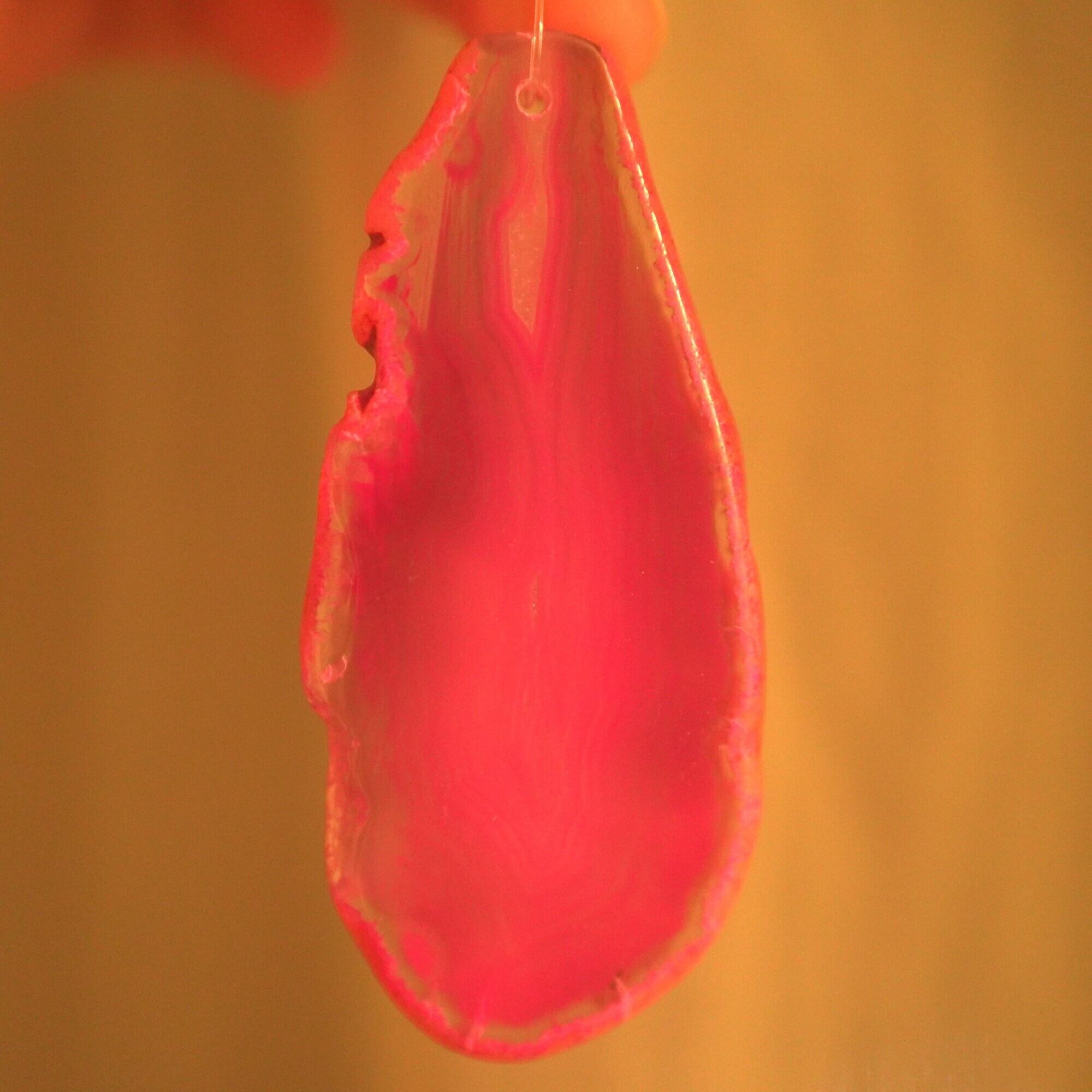 ✧✧✧瑪瑙の濃い色は染色によるもので、水に濡れたり布で擦ると多少色落ちします。飾るものなので大丈夫かと思いますが白いお洋服などには触れないようにされてください。汚れが気になる時は若干の色落ち前提で水を軽く含ませた布やティッシュでやさしく拭いていただくことは大丈夫です。また、画像のような細かなヒビ・カケはスライスメノウの加工上かなり多くあるので、チャイムとしての機能や全体の外観を著しく損なうものを除き、見た目の完璧さ<音色の響き重視で選んで使用しております、よろしくお願い致します✧✧✧