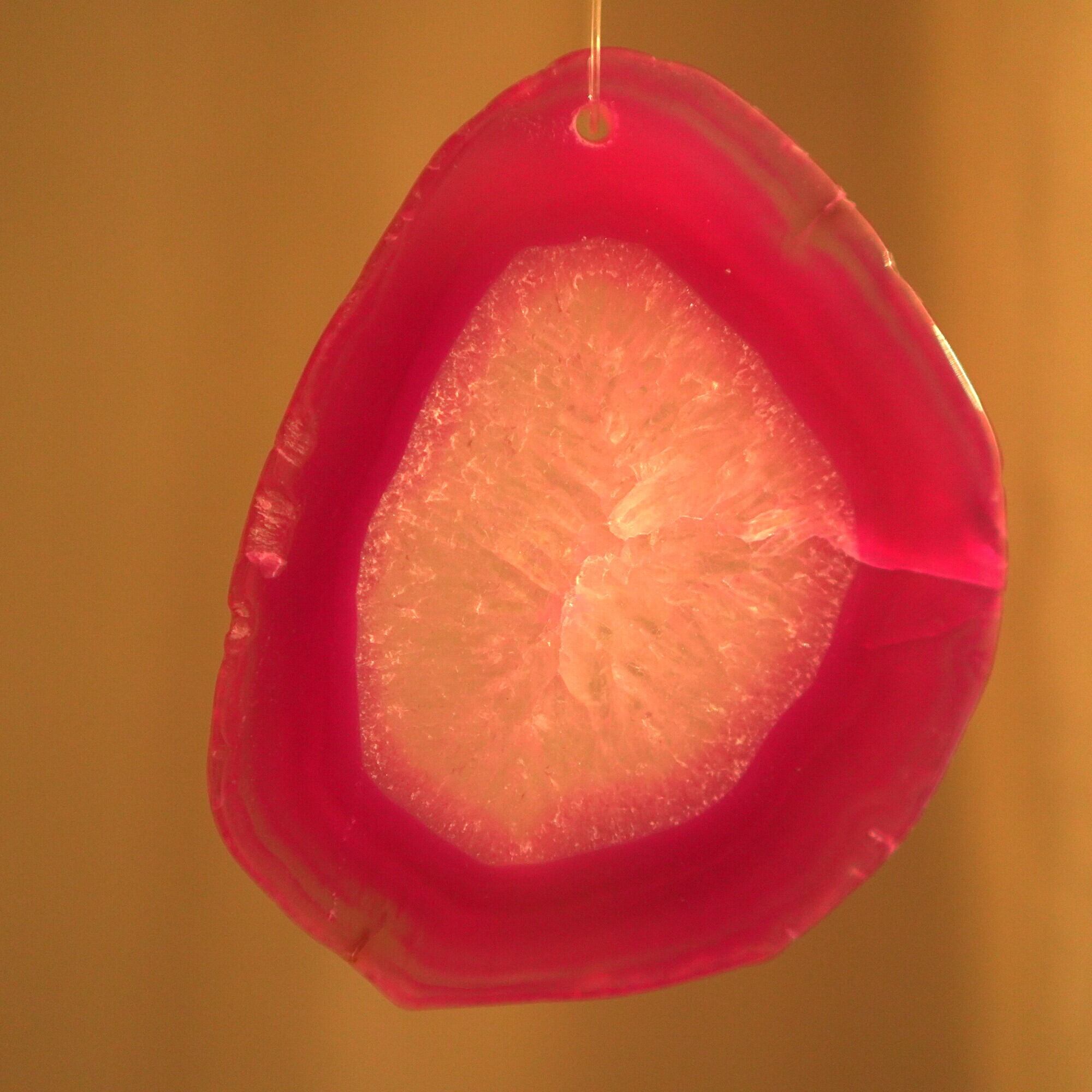 ✧✧✧瑪瑙の濃い色は染色によるもので、水に濡れたり布で擦ると多少色落ちします。飾るものなので大丈夫かと思いますが白いお洋服などには触れないようにされてください。汚れが気になる時は若干の色落ち前提で水を軽く含ませた布やティッシュでやさしく拭いていただくことは大丈夫です。また、画像のような細かなヒビ・カケはスライスメノウの加工上かなり多くあるので、チャイムとしての機能や全体の外観を著しく損なうものを除き、見た目の完璧さ<音色の響き重視で選んで使用しております、よろしくお願い致します✧✧✧