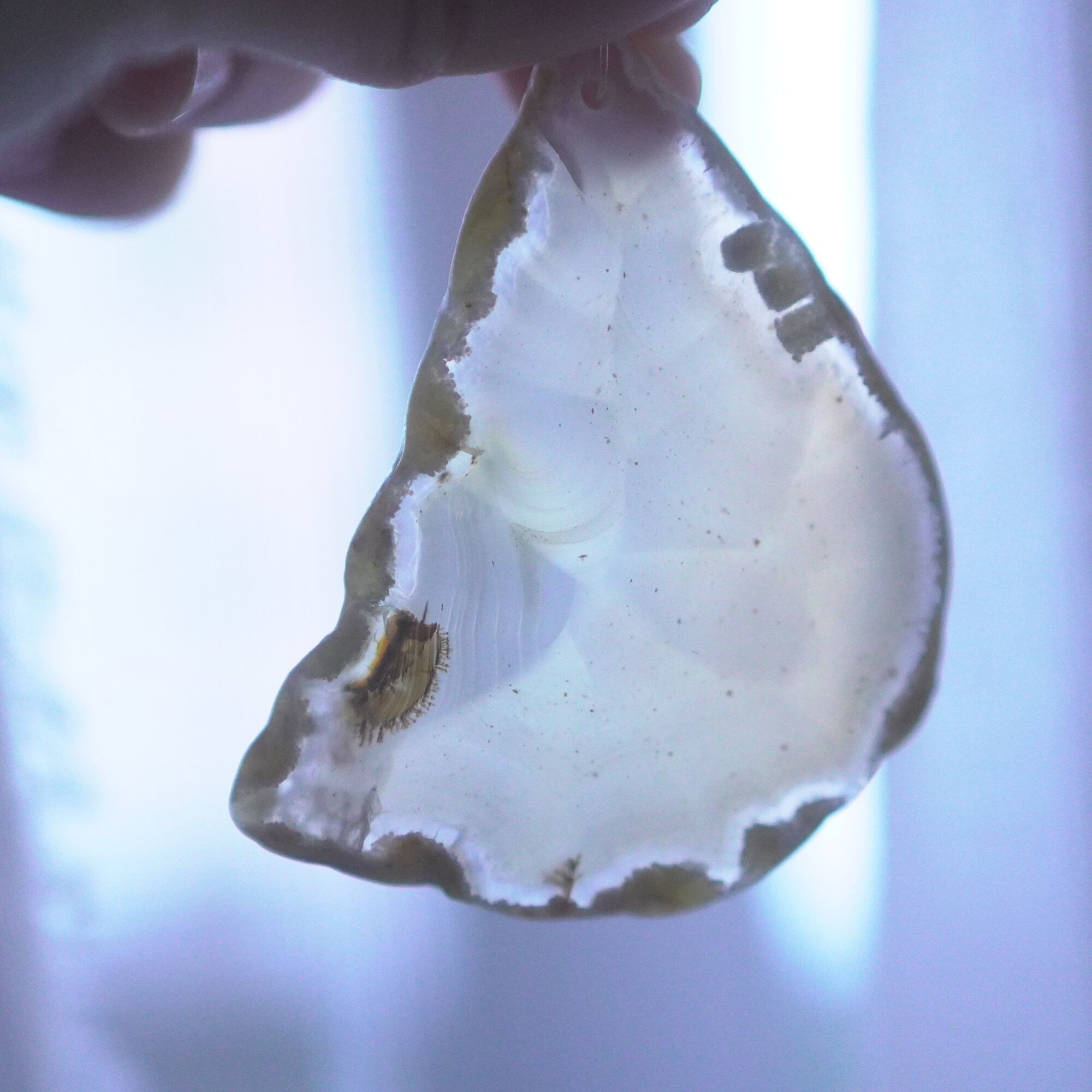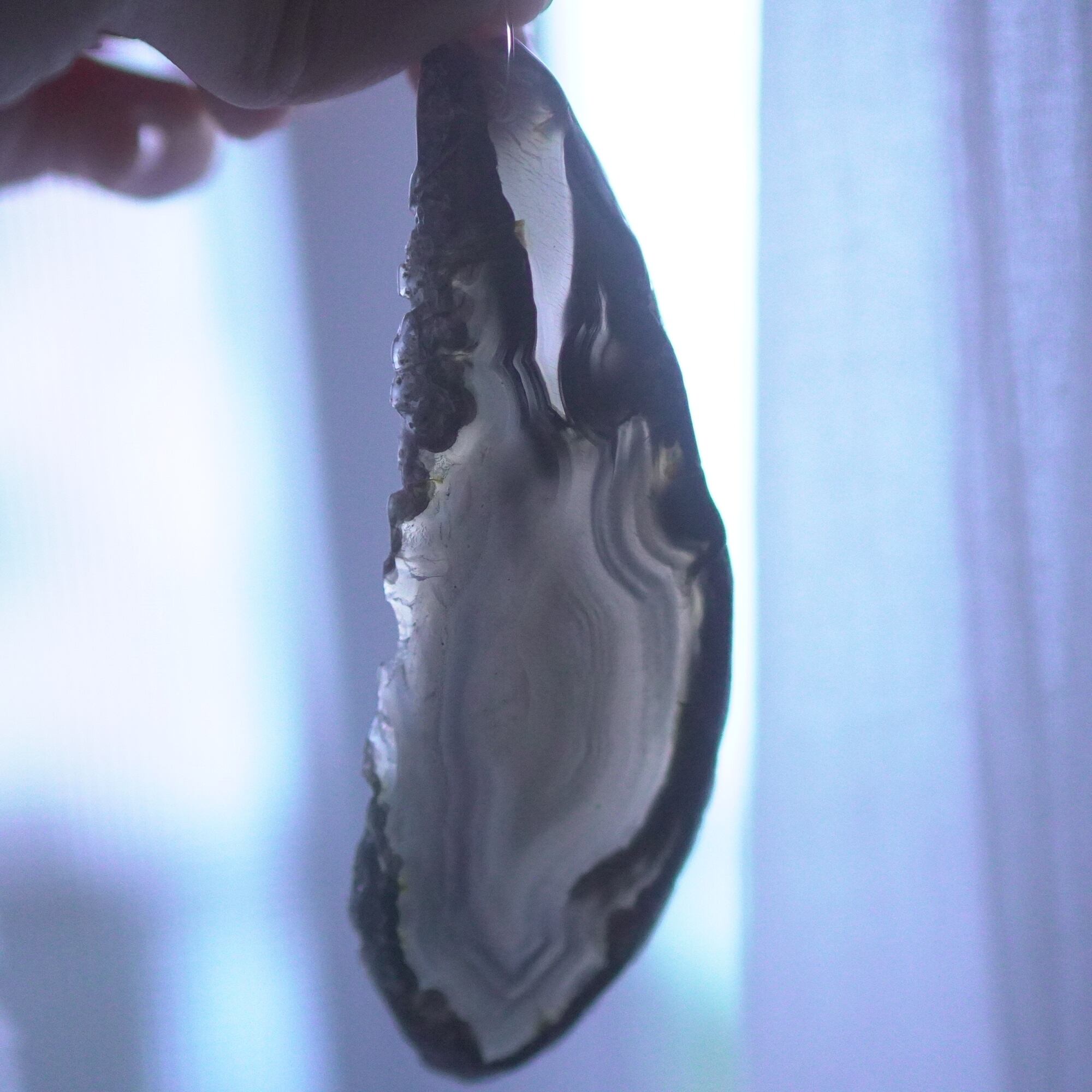 月の満ち欠けのような形のアゲートのモノトーンカラーです。