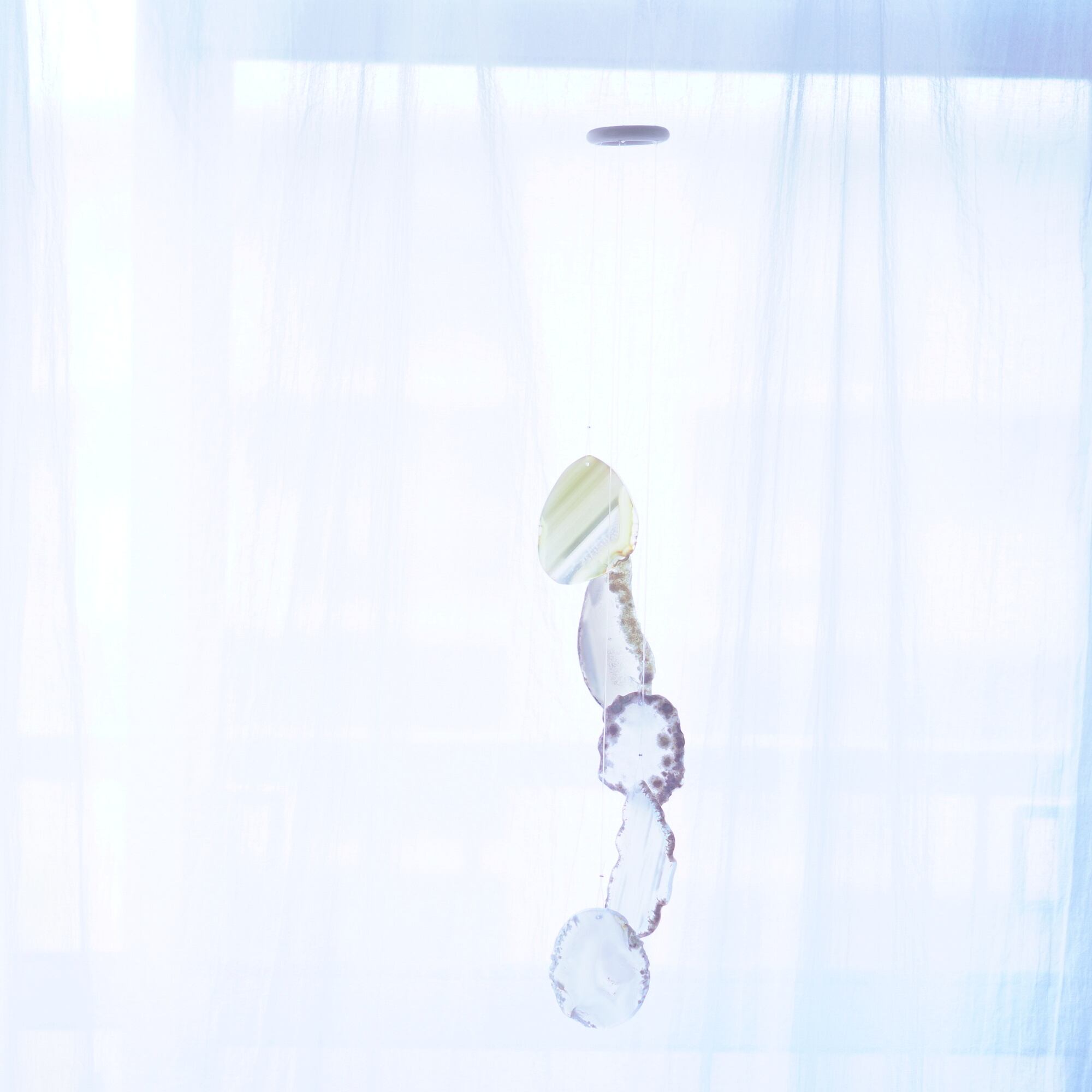 連なるアゲートが風を受けて揺れるとチリンチリン、美しい響きの音が鳴りとても癒されます。