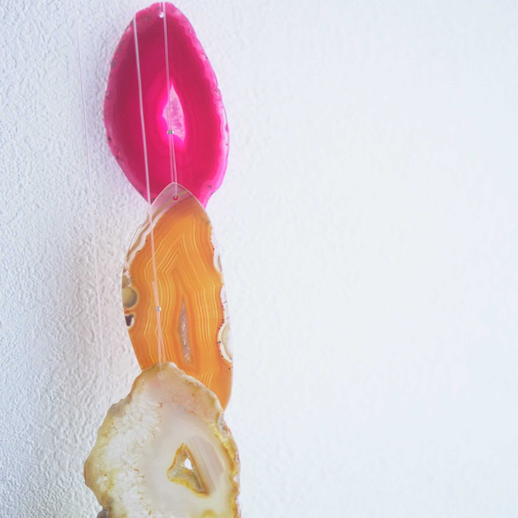 連なるアゲートが風を受けて揺れるとチリンチリン、美しい響きの音が鳴りとても癒されます。