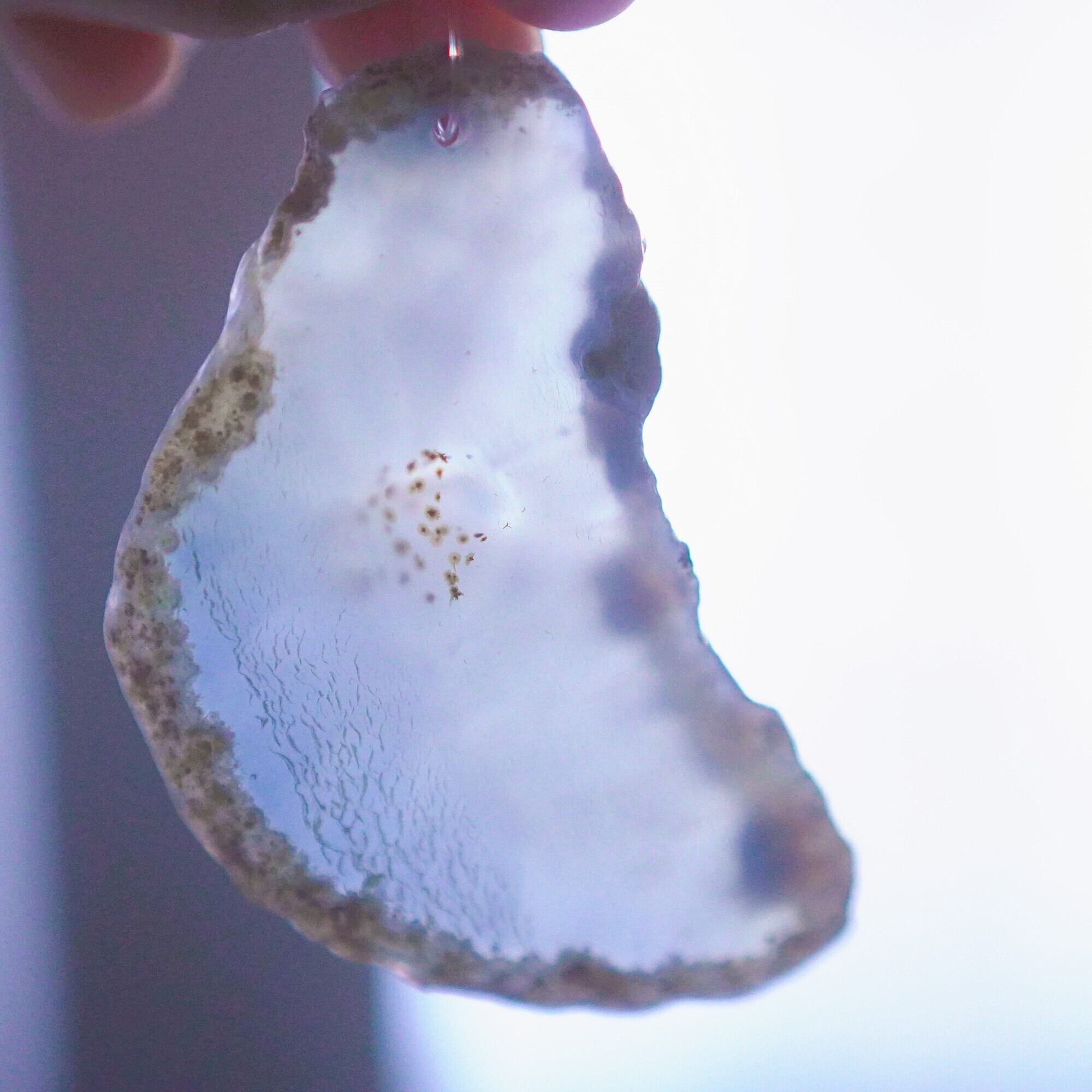 また、透明感が魅力でもあるので、窓際で自然光を通した際と、室内灯の下で光を通さずに見る際、異なる表情を見せてくれますのでその違いも是非お楽しみください。(写真の前半は自然光を透かせたもので、後半の4枚は光を透かさず壁を背景に撮影したものです)