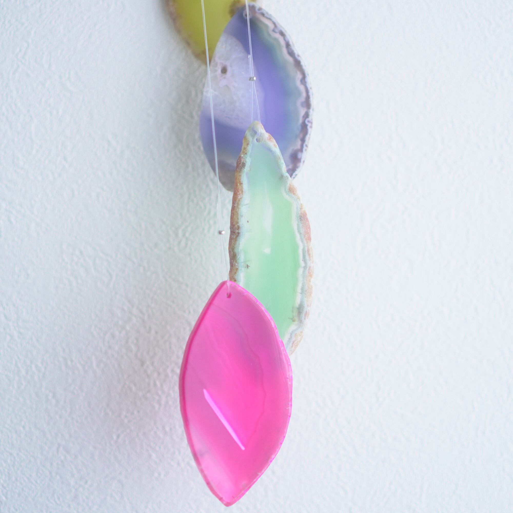連なるアゲートが風を受けて揺れるとチリンチリン、美しい響きの音が鳴りとても癒されます。