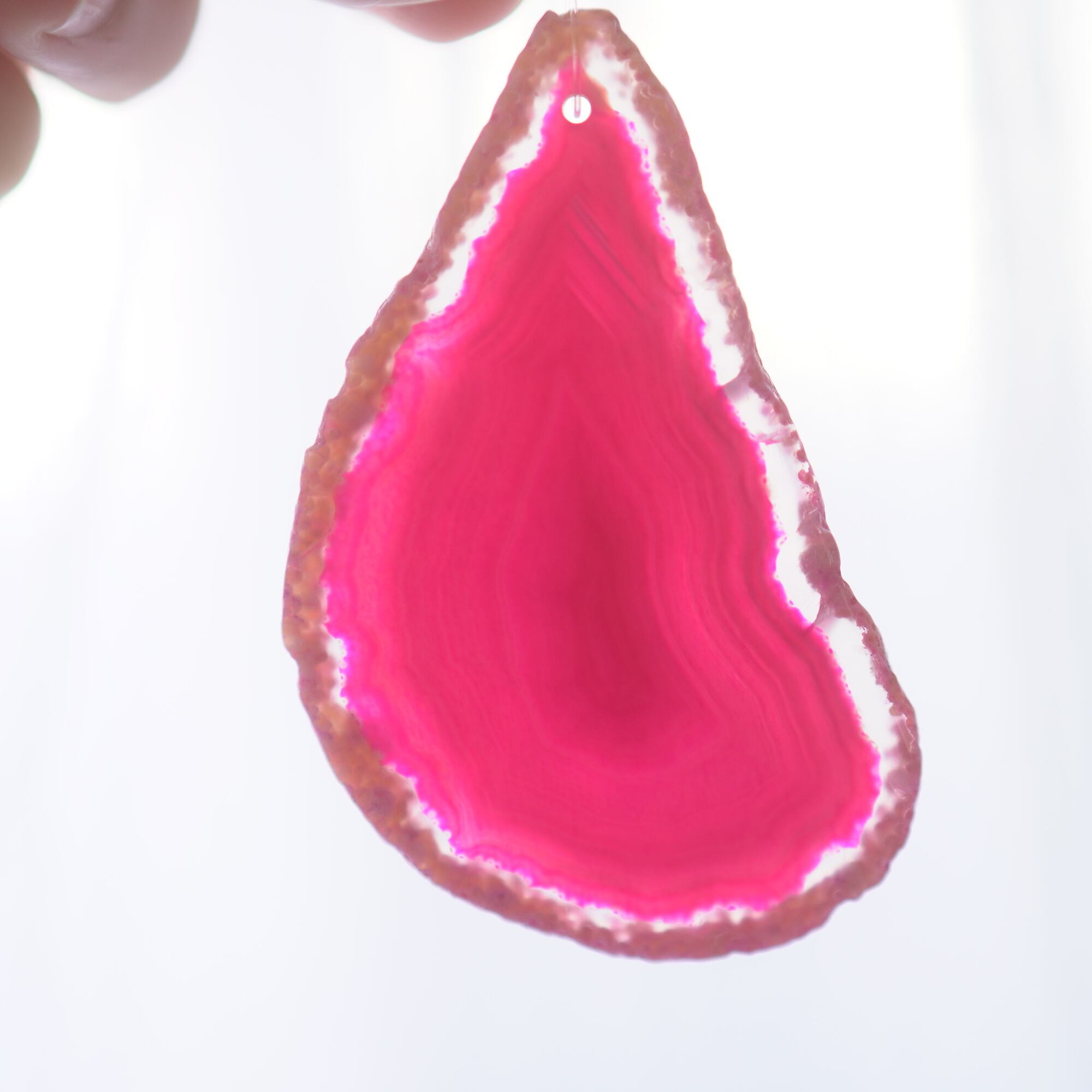 ✧✧✧瑪瑙の濃い色は染色によるもので、水に濡れたり布で擦ると多少色落ちします。飾るものなので大丈夫かと思いますが白いお洋服などには触れないようにされてください。汚れが気になる時は若干の色落ち前提で水を軽く含ませた布やティッシュでやさしく拭いていただくことは大丈夫です。また、画像のような細かなヒビ・カケはスライスメノウの加工上かなり多くあるので、チャイムとしての機能や全体の外観を著しく損なうものを除き、見た目の完璧さ<音色の響き重視で選んで使用しております、よろしくお願い致します✧✧✧