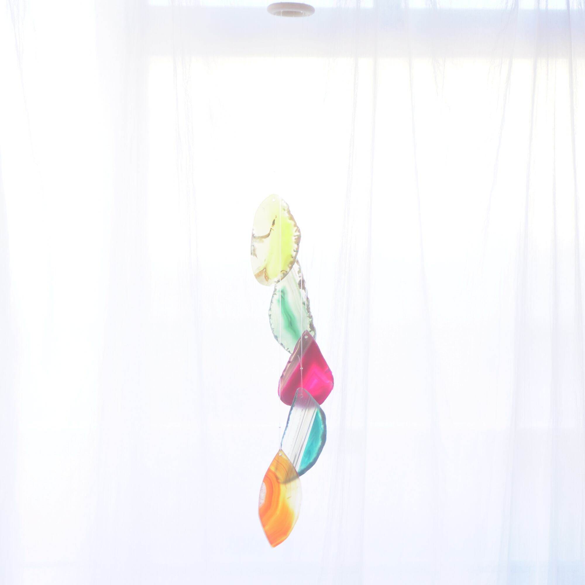連なるアゲートが風を受けて揺れるとチリンチリン、美しい響きの音が鳴りとても癒されます。