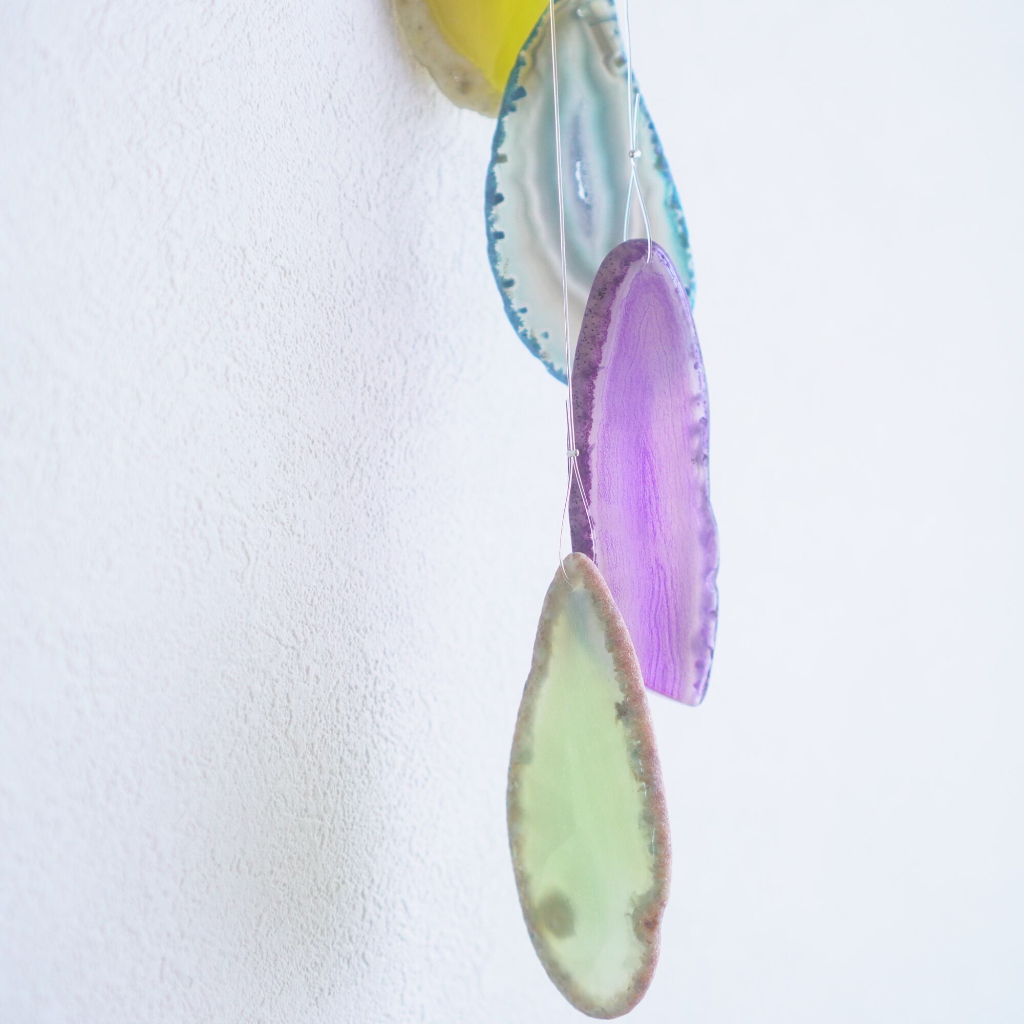 連なるアゲートが風を受けて揺れるとチリンチリン、美しい響きの音が鳴りとても癒されます。
