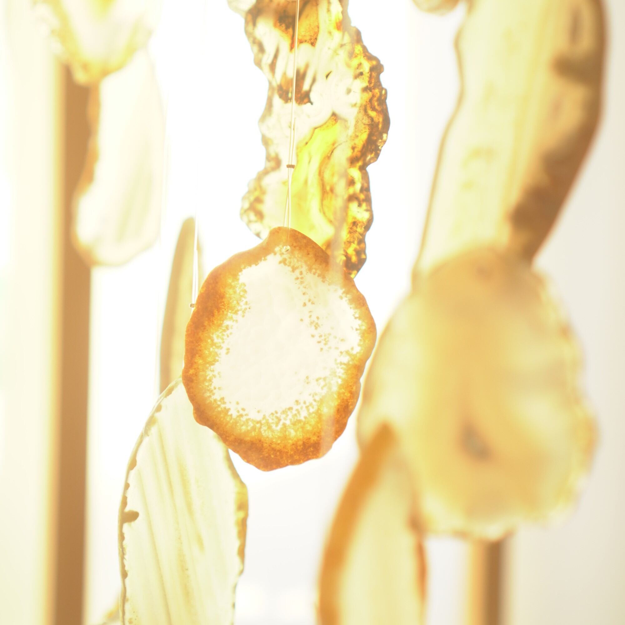 連なるアゲートが風を受けて揺れるとチリンチリン、美しい響きの音が鳴りとても癒されます。