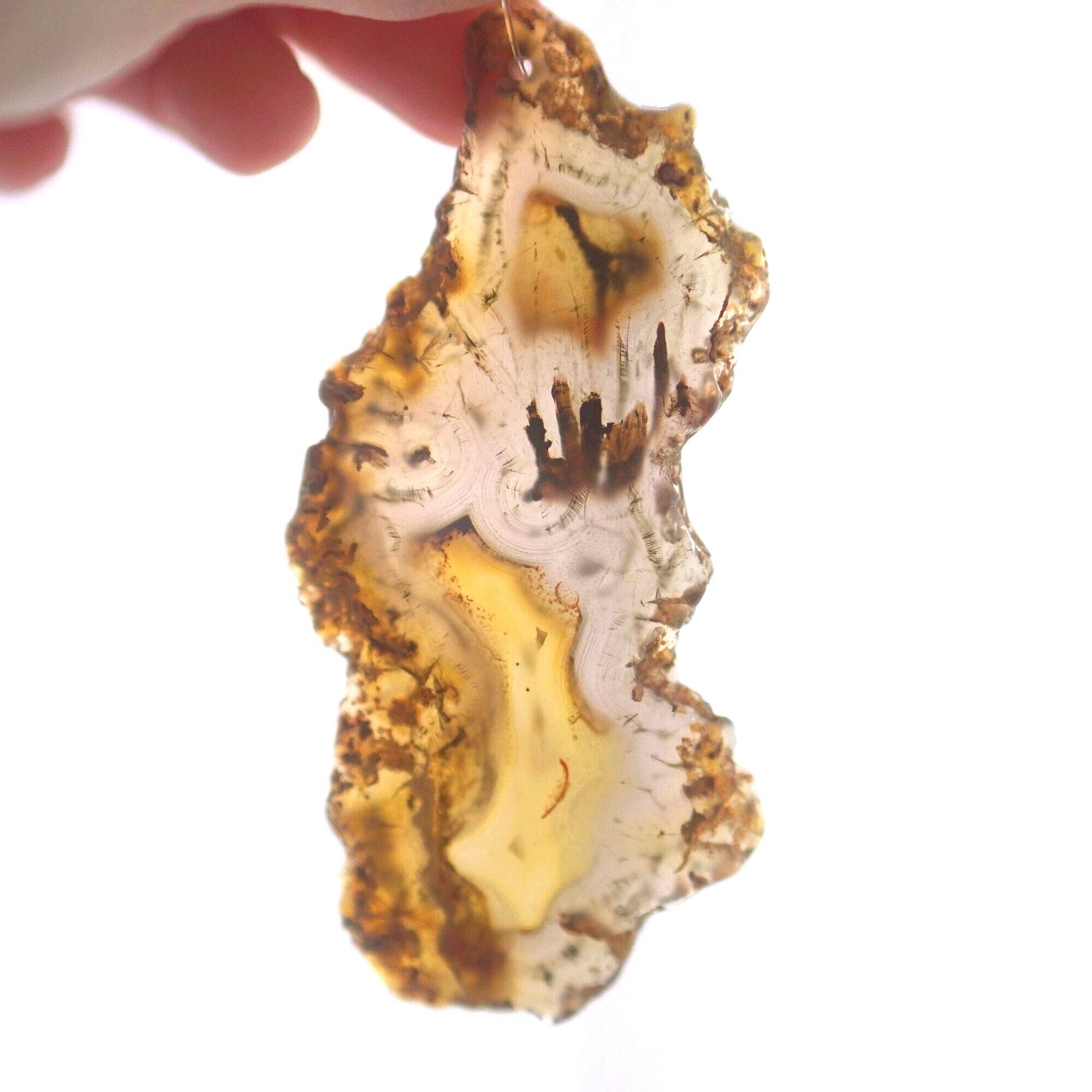 Agate Slice , Natural Wood , Nylon Cord , Metal