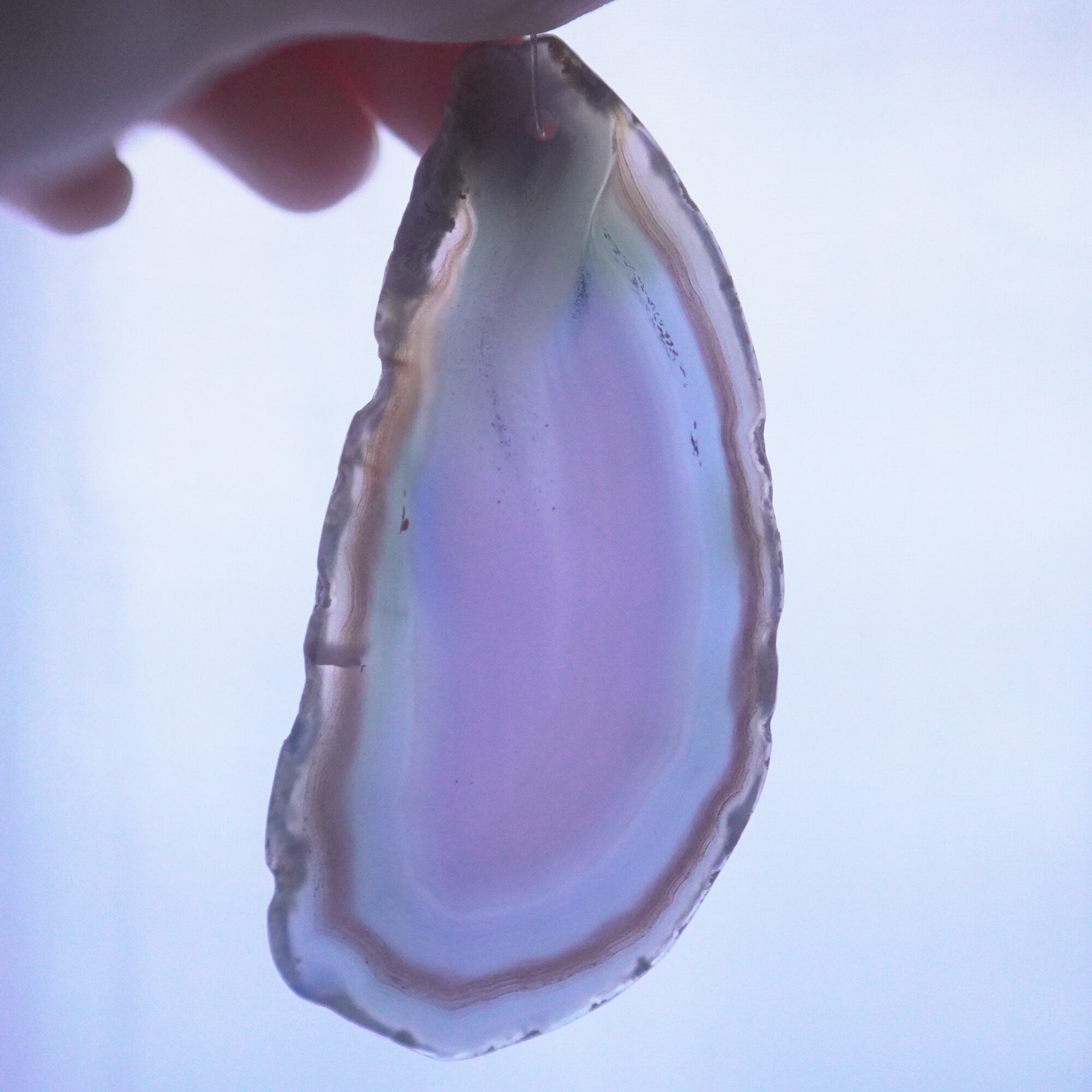 ✧✧✧瑪瑙の濃い色は染色によるもので、水に濡れたり布で擦ると多少色落ちします。飾るものなので大丈夫かと思いますが白いお洋服などには触れないようにされてください。汚れが気になる時は若干の色落ち前提で水を軽く含ませた布やティッシュでやさしく拭いていただくことは大丈夫です。また、画像のような細かなヒビ・カケはスライスメノウの加工上かなり多くあるので、チャイムとしての機能や全体の外観を著しく損なうものを除き、見た目の完璧さ<音色の響き重視で選んで使用しております、よろしくお願い致します✧✧✧