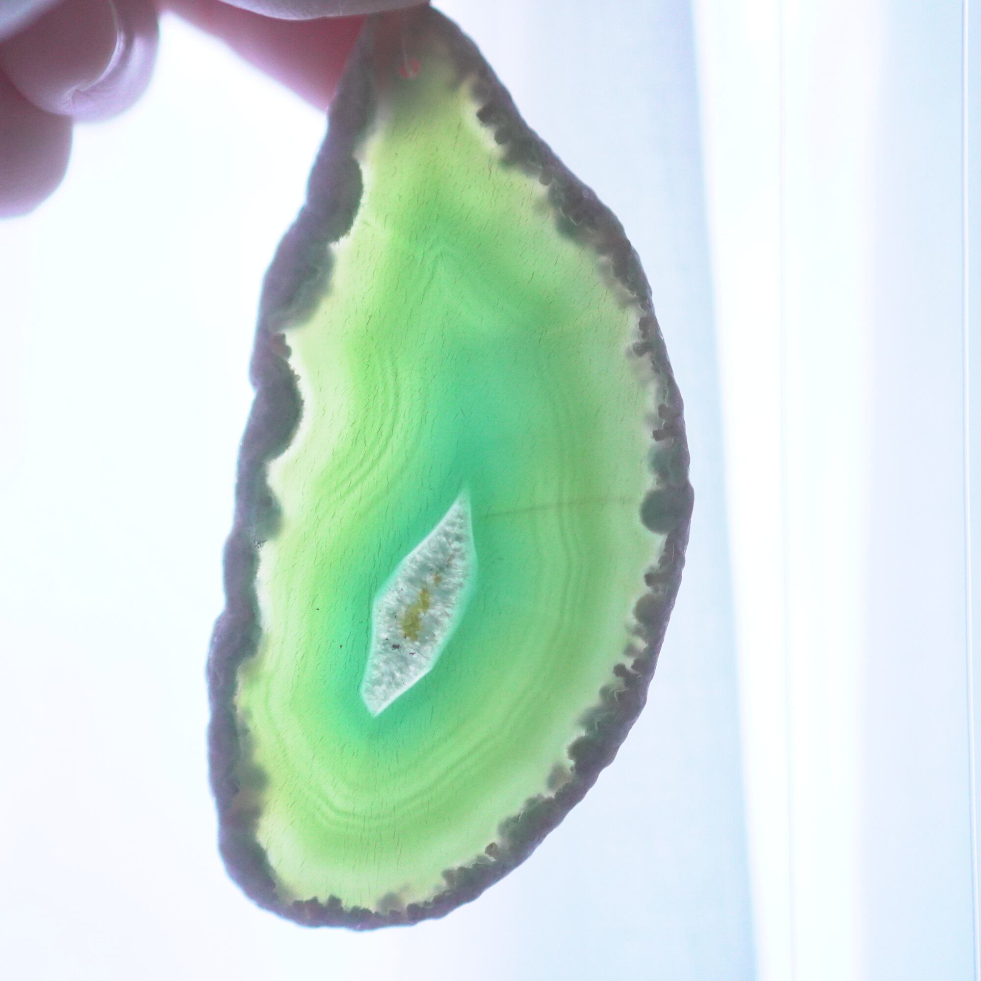 ✧✧✧染色の石なので耐光性(光による経年でのカラー変化の耐性)に優れているわけではなく一日の中でかなりの長時間強い日光に当たるような場所に飾られるのはおすすめしないのですが、陽光に透かした時にだけ真価を発揮する美しさがありますので、是非光と一緒にお楽しみいただけたらと思っております。どうしても気になられる場合は、日光のあまり当たらない場所に飾っていただけたらと思います✧✧✧