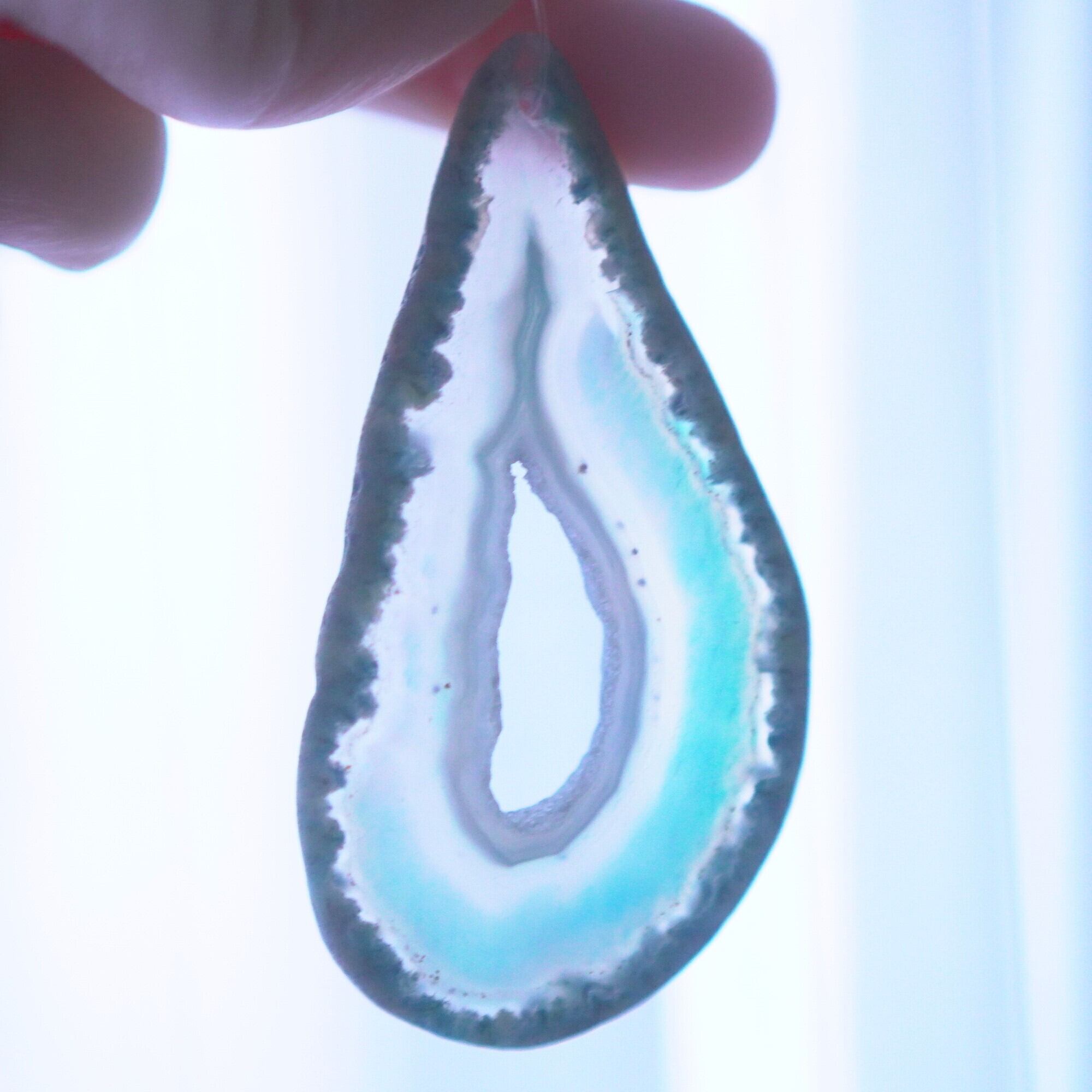 Agate Slice , Natural Wood , Nylon Cord , Metal