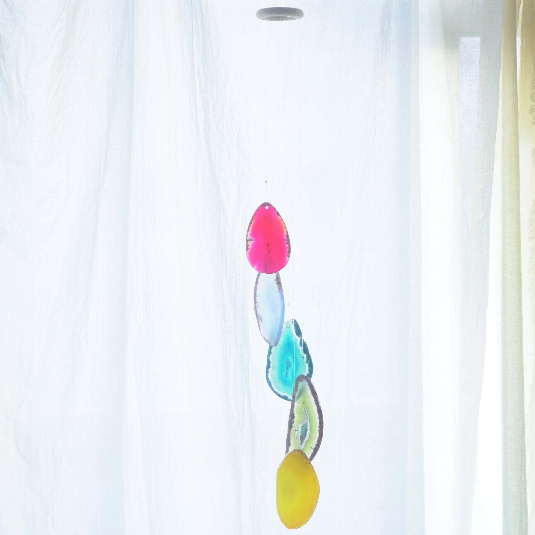 連なるアゲートが風を受けて揺れるとチリンチリン、美しい響きの音が鳴りとても癒されます。