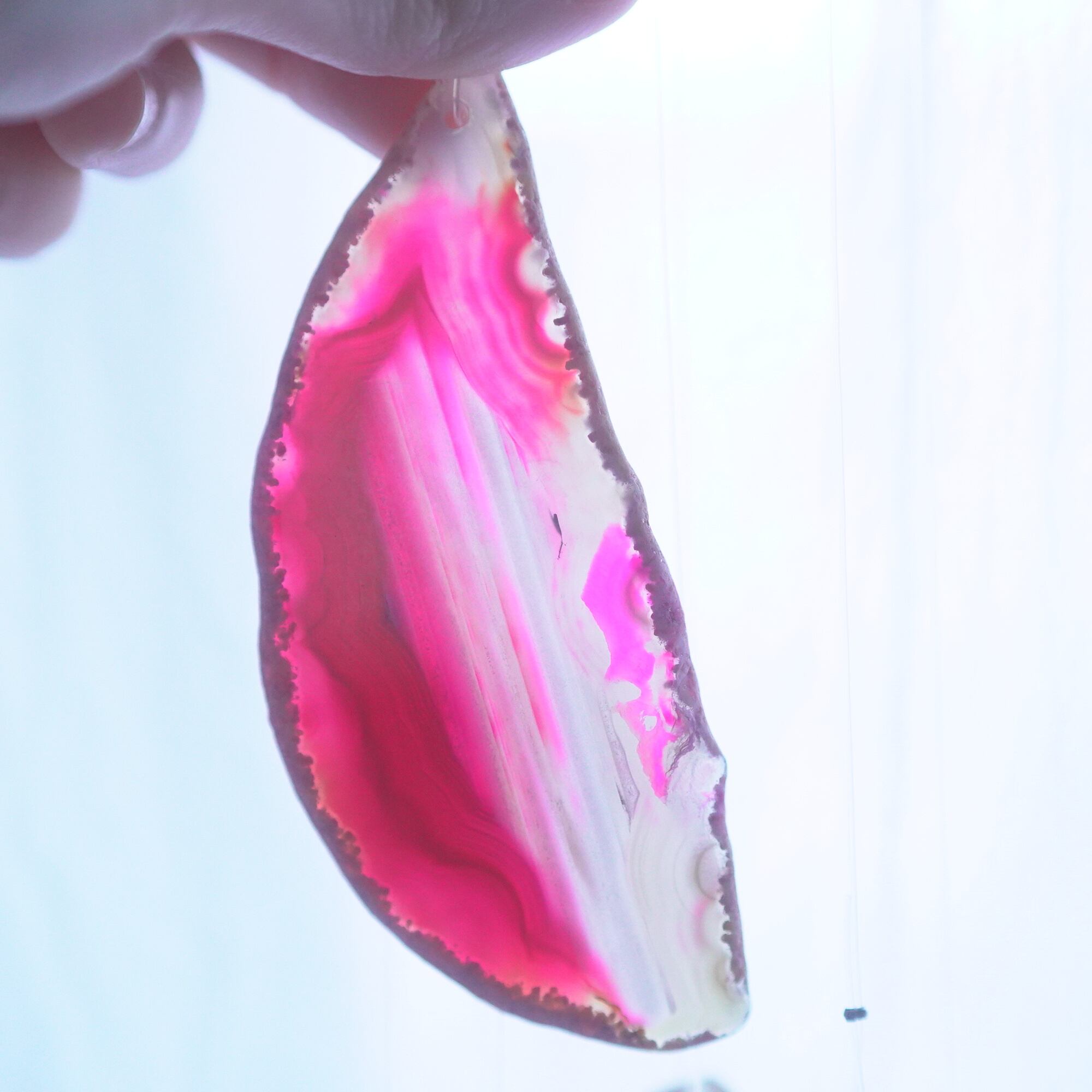 ✧✧✧染色の石なので耐光性(光による経年でのカラー変化の耐性)に優れているわけではなく一日の中で長時間強い日光に当たるような場所に飾られるのはおすすめしないのですが、陽光に透かした時にだけ真価を発揮する美しさがありますので、是非たまに翳したりして光と一緒にお楽しみいただけたらと思っております。特に濃い鮮やかな色など、気になられる場合は、日光のあまり当たらない場所に飾っていただけたらと思います✧✧✧