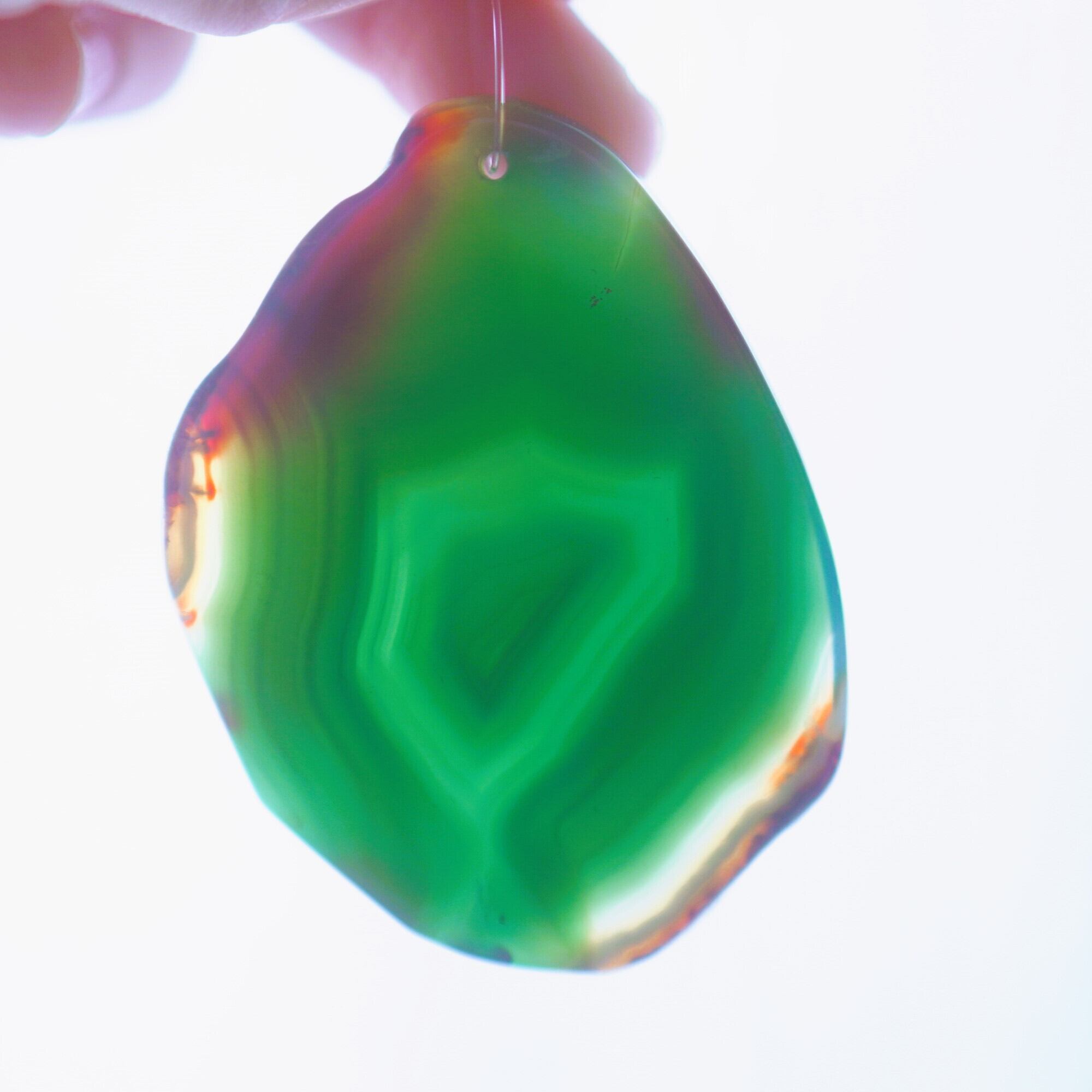 ✧✧✧染色の石なので耐光性(光による経年でのカラー変化の耐性)に優れているわけではなく一日の中で長時間強い日光に当たるような場所に飾られるのはおすすめしないのですが、陽光に透かした時にだけ真価を発揮する美しさがありますので、是非たまに翳したりして光と一緒にお楽しみいただけたらと思っております。特に濃い鮮やかな色など、気になられる場合は、日光のあまり当たらない場所に飾っていただけたらと思います✧✧✧