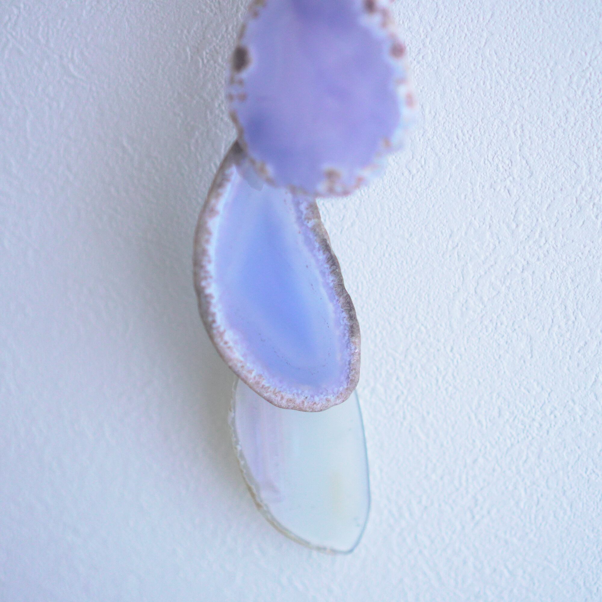 ✧✧✧瑪瑙の濃い色は染色によるもので、水に濡れたり布で擦ると多少色落ちします。飾るものなので大丈夫かと思いますが白いお洋服などには触れないようにされてください。汚れが気になる時は若干の色落ち前提で水を軽く含ませた布やティッシュでやさしく拭いていただくことは大丈夫です。また、画像のような細かなヒビ・カケはスライスメノウの加工上かなり多くあるので、チャイムとしての機能や全体の外観を著しく損なうものを除き、見た目の完璧さ<音色の響き重視で選んで使用しております、よろしくお願い致します✧✧✧